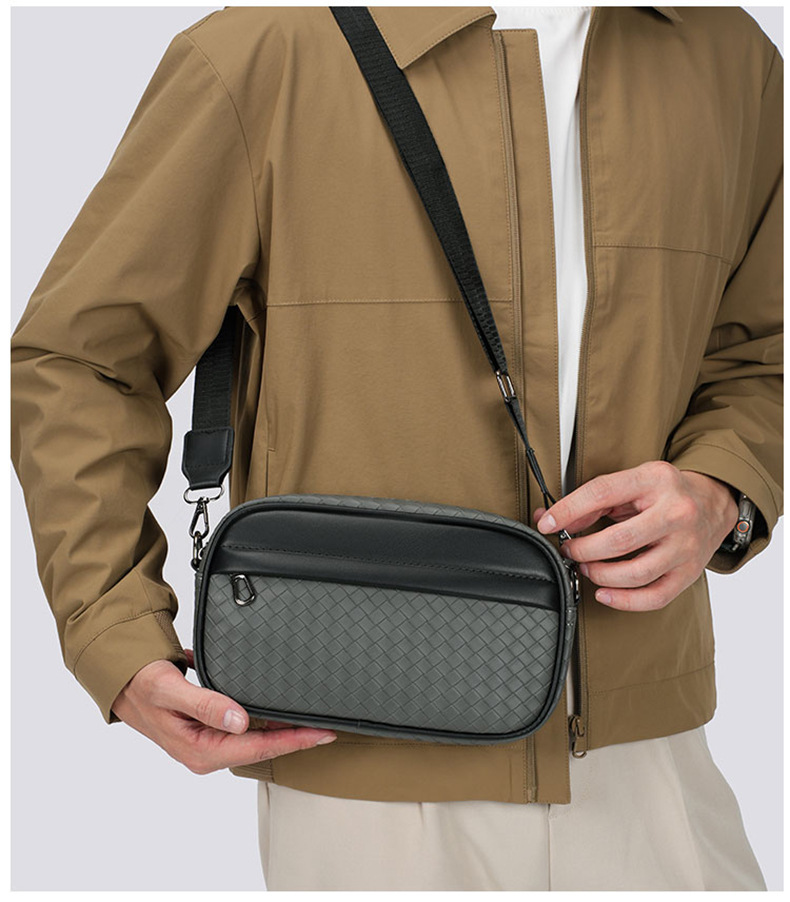 男士斜挎包新款都市简约休闲百搭韩版编织横款多功能手拿单肩男包