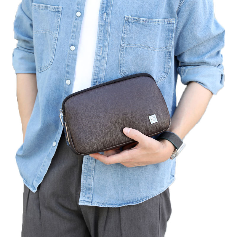 指紋ロックメンズクラッチバッグ新しいビジネスレザーバッグ大容量スマート盗難防止携帯電話パスワードカジュアルクラッチバッグ