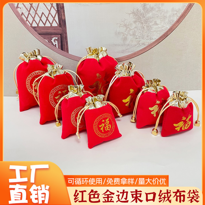 メーカー既製ジュエリー巾着包装袋、金縁のベルベットの小さな布袋、錦袋、ブレスレット束袋