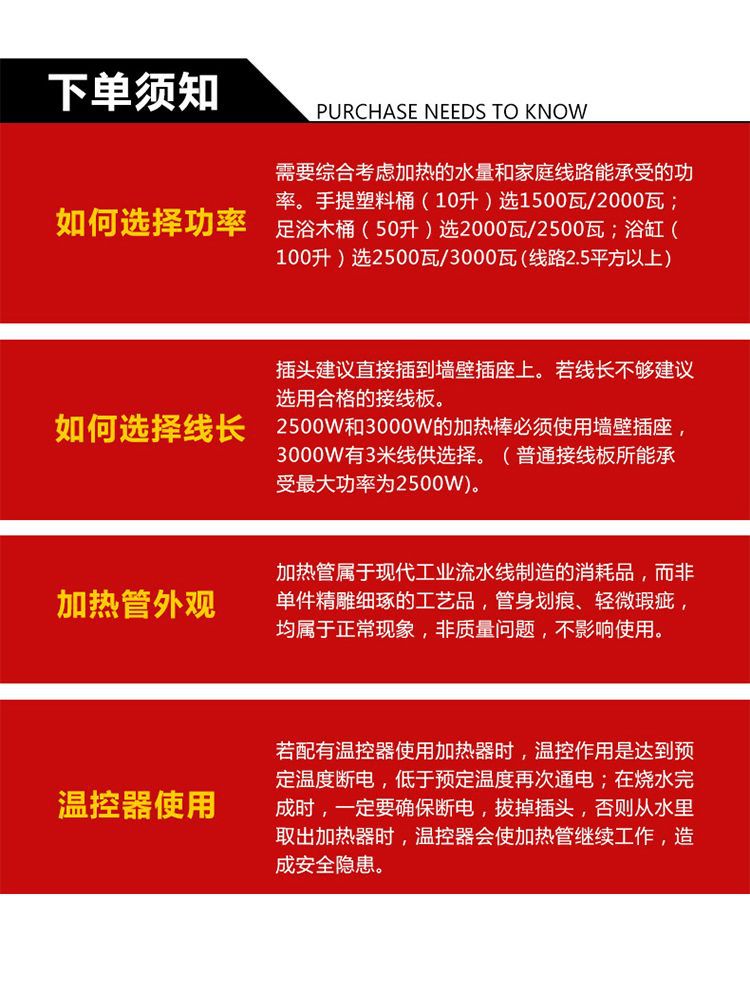 型番 1500wパーマ防止湯加熱棒,2000w熱湯防止加熱棒,2500w熱湯防止加熱棒,3000wパーマ防止湯加熱棒,1500w熱湯防止加熱棒 + 温度調節器,2000w熱湯防止加熱棒 + 温度調節器,2500w熱湯防止加熱棒 + 温度調節器,3000w熱湯防止加熱棒 + 温度調節器