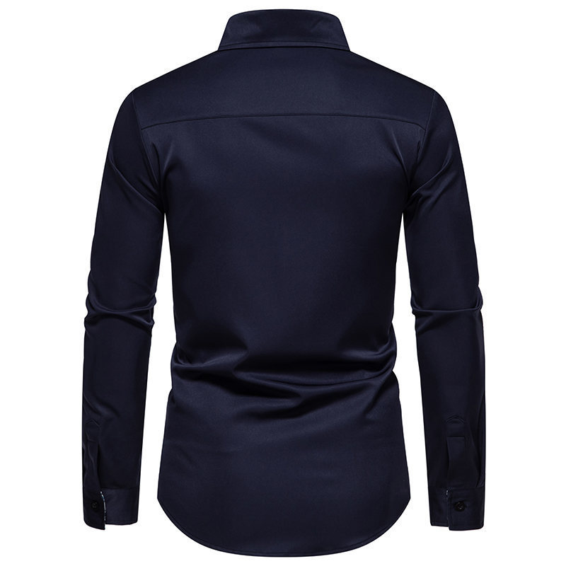 クロスボーダー秋冬新作メンズ長袖シャツ欧米風青年カジュアル襟折りシャツメンズ卸売