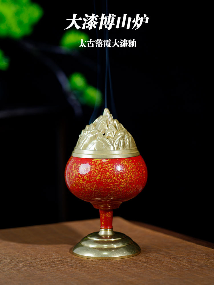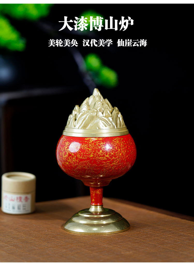 手作りの大きな漆の博山炉の黄銅の置物は古い家庭の室内の高級な沈香のアロマストーブの香道のアイデアの香炉に似ています。