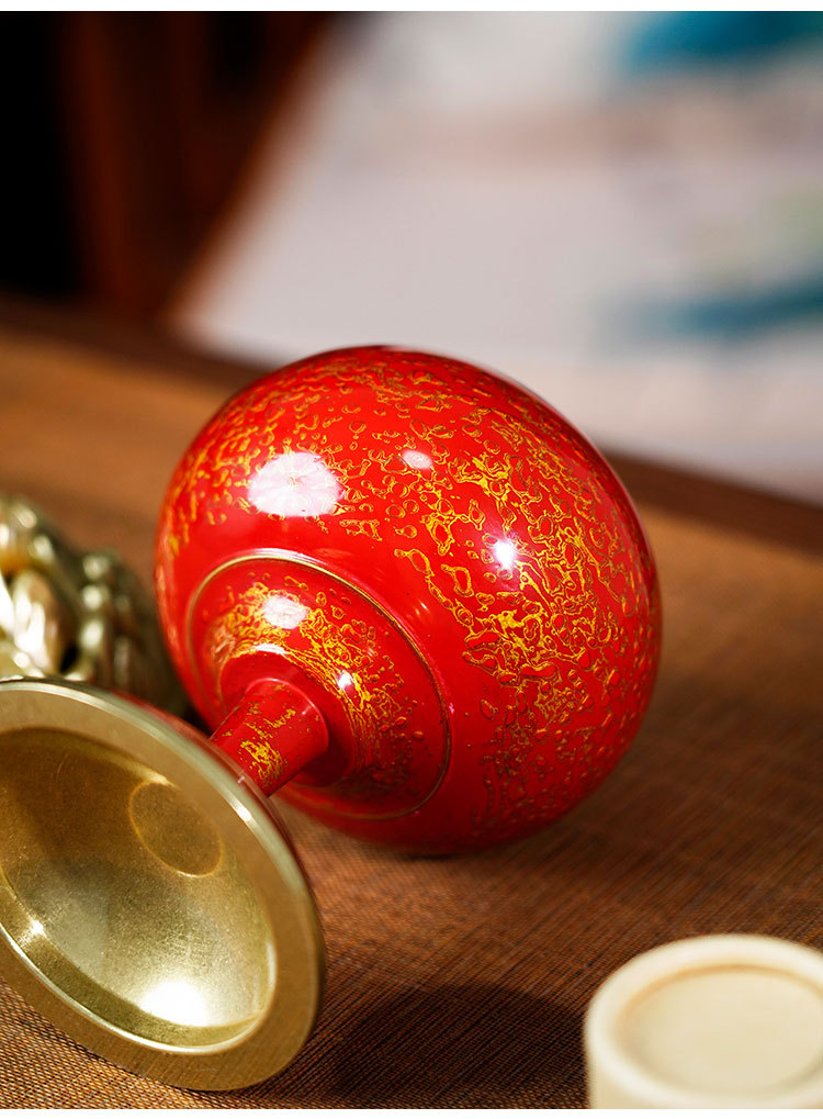 銅の木の香の大きい漆の壺は黄銅の紫の砂の壺を被って工夫の茶器の部品の中国式の復古の手芸のお茶を支えます。