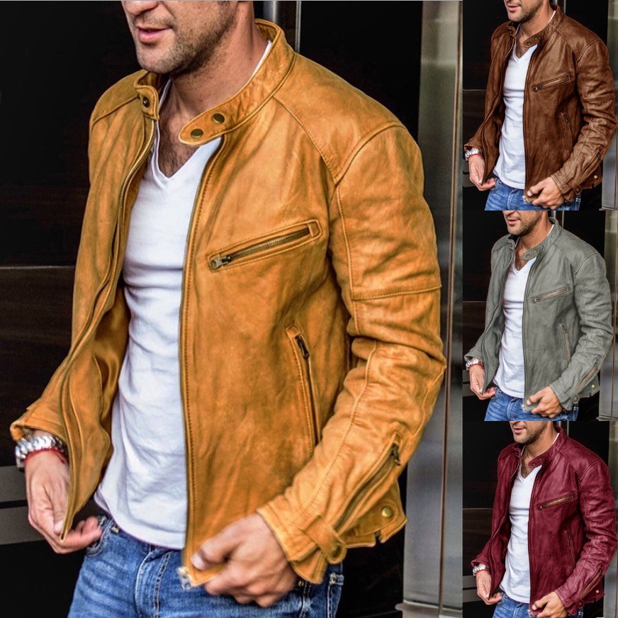 外国貿易の欧米のメンズ秋冬の男性puの皮の服の男性の青年の立襟のパンクの男性の機関車の皮の服のジャケットの卸売り