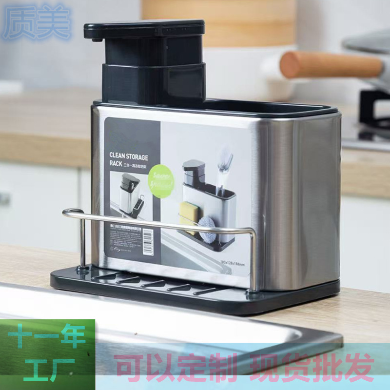 クロスボーダー新しいスリーインワンキッチン家庭用多機能ステンレス鋼の箸と食器一体型排水収納ボックススプーン