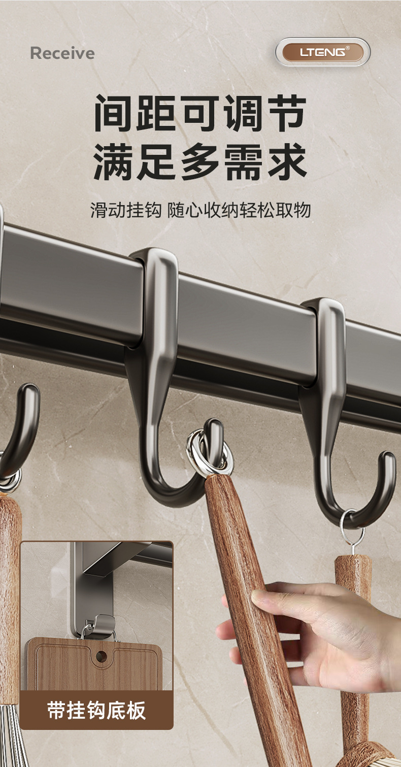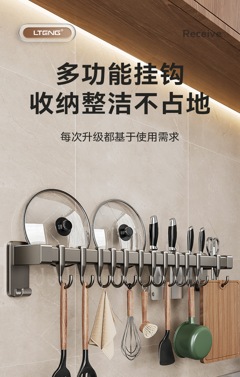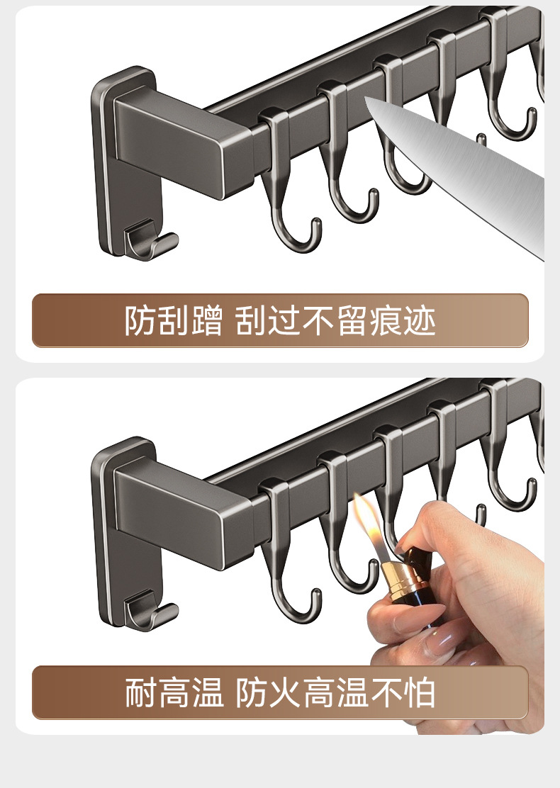 キッチンフック穴なし棚銃グレー多機能収納スプーンシャベルナイフホルダー収納整理フック