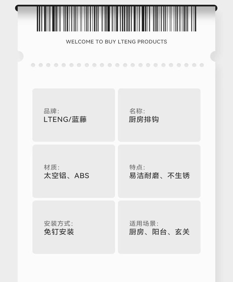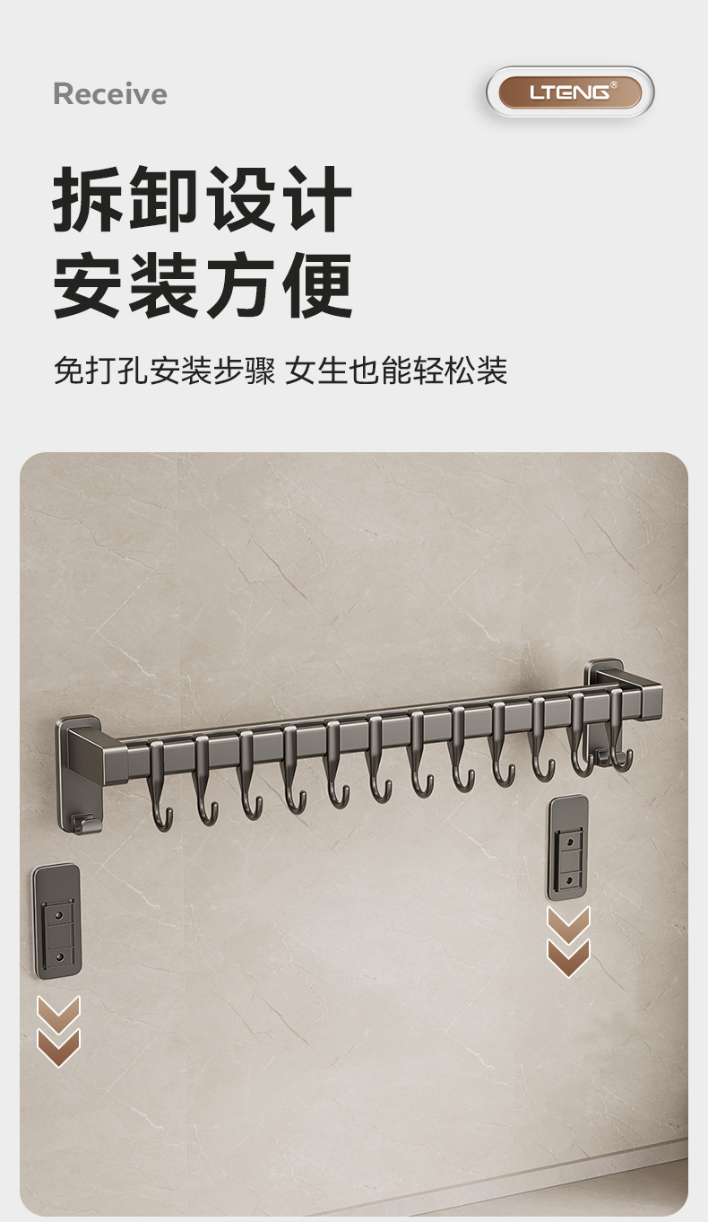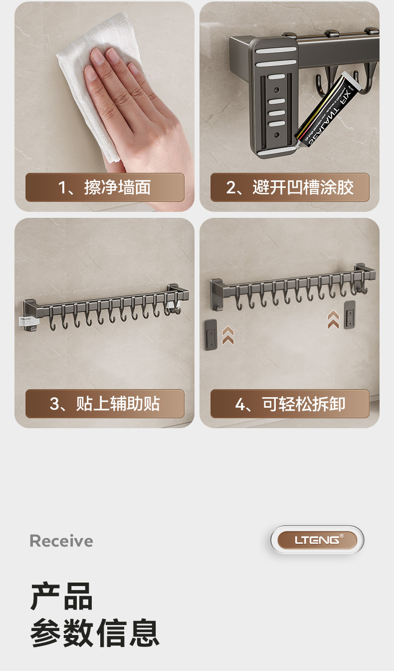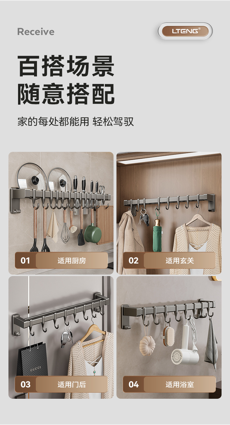 キッチンフック穴なし棚銃グレー多機能収納スプーンシャベルナイフホルダー収納整理フック