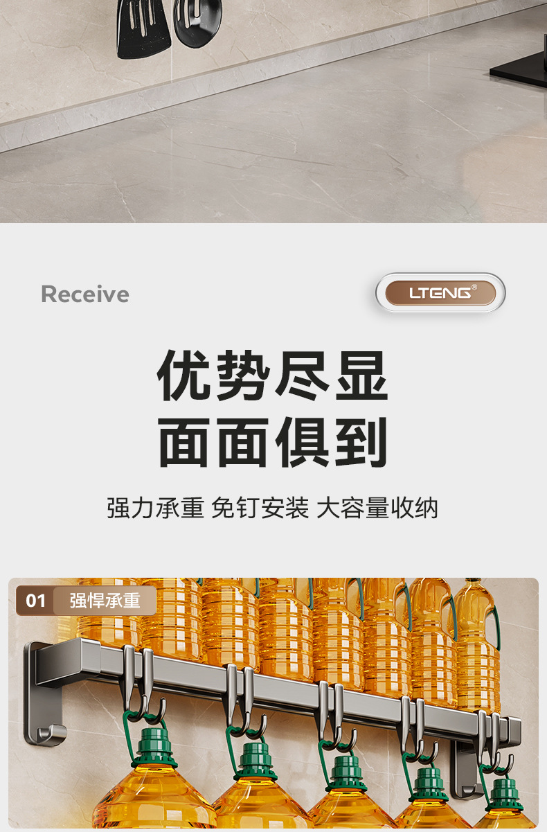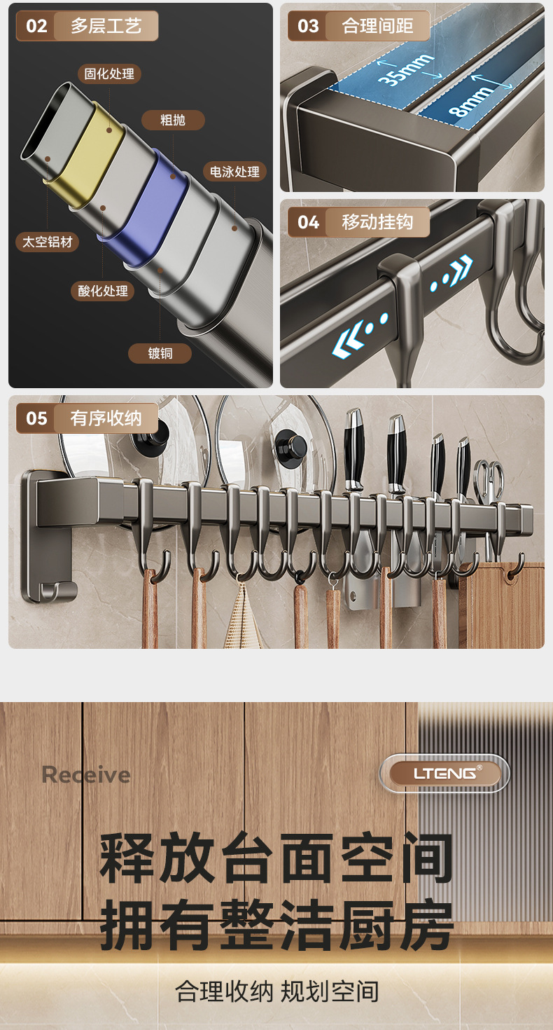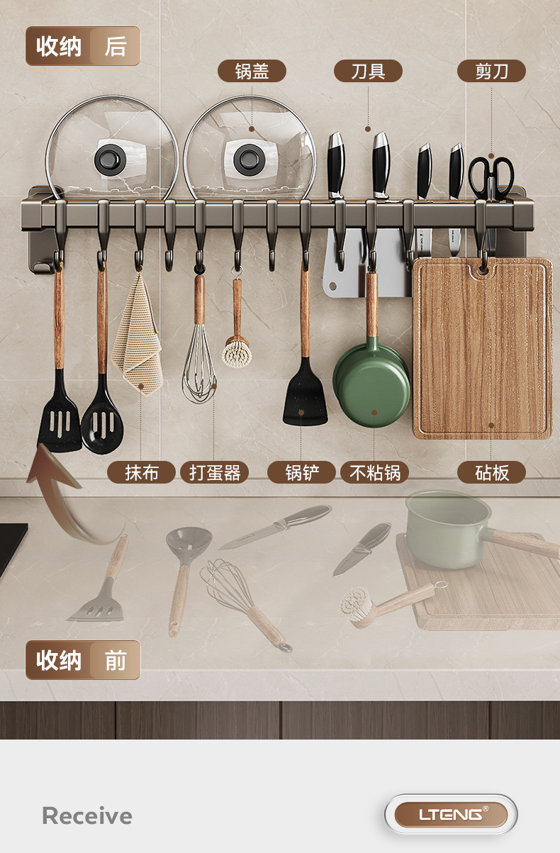 多功能刀架免打孔挂钩厨房壁挂式锅铲刀具收纳筷子调料用品置物架