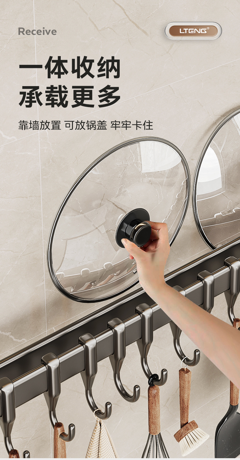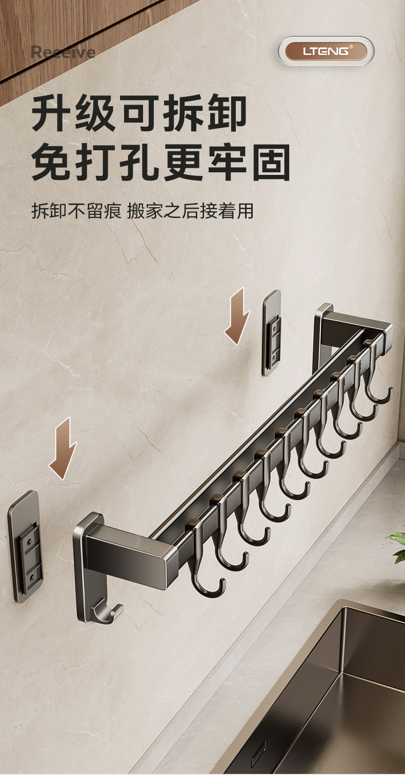キッチンフック穴なし掛け棒鍋スプーンシャベル掛け多機能棚フック壁掛け収納棚