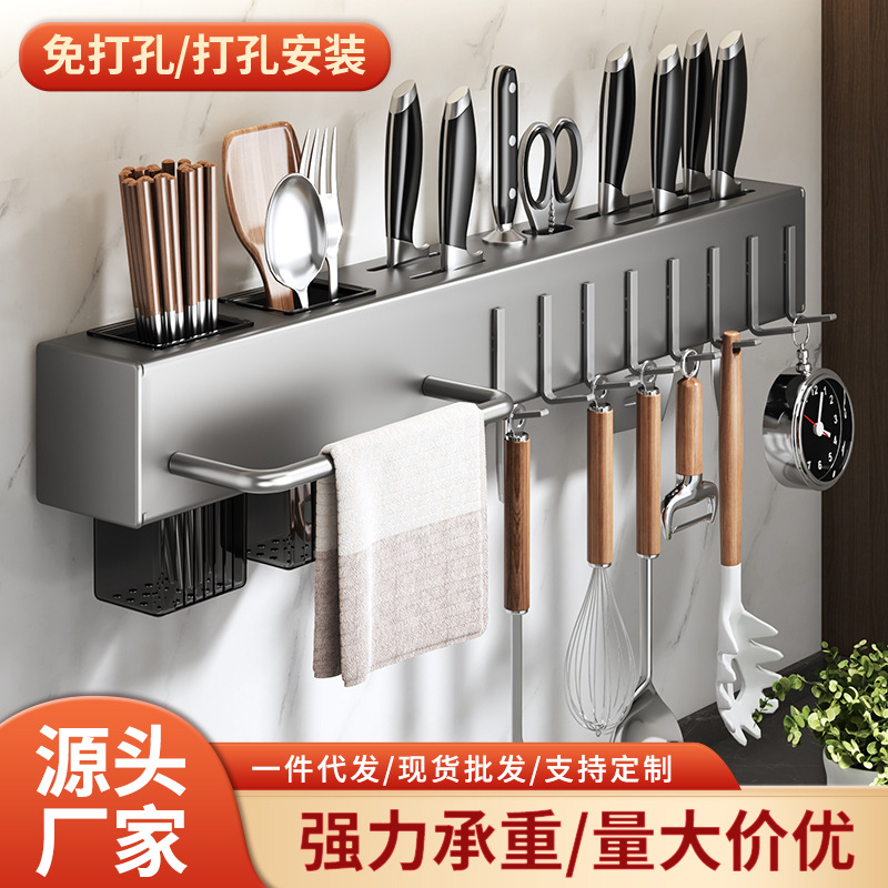ステンレスナイフホルダーキッチン刃物ホルダー穴なし多機能包丁箸収納棚壁掛け刃棚