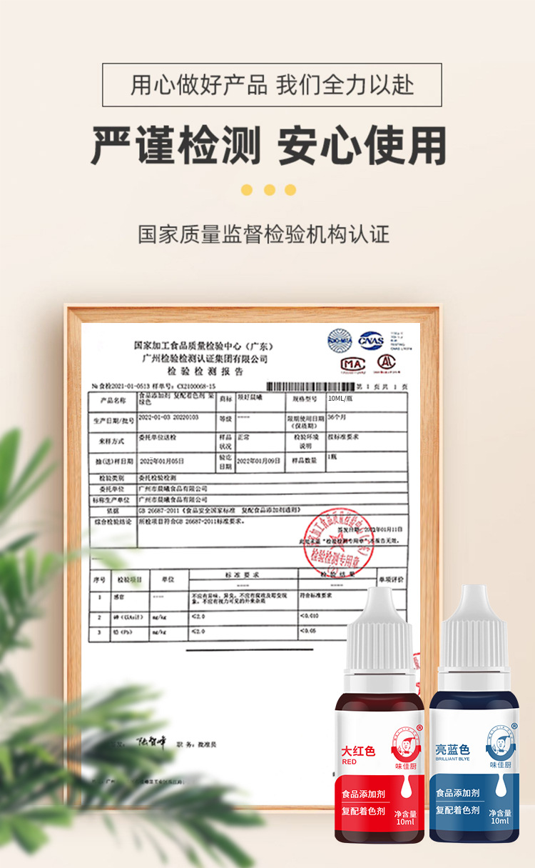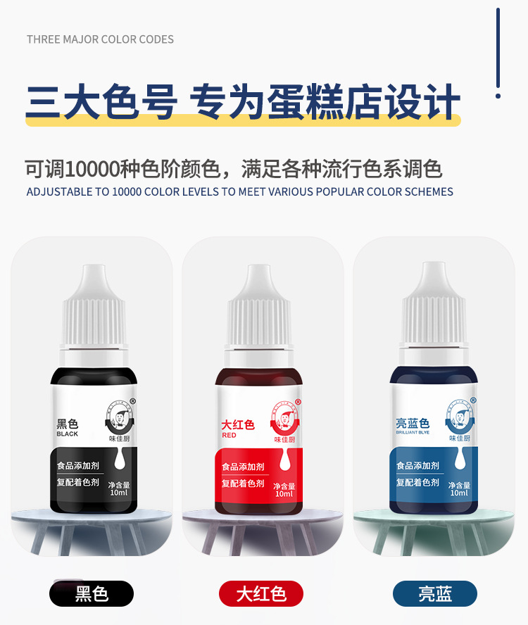 最高級の晨曦色素は食用グレードで、ケーキや焼き菓子に使用できる大紅色、レモンイエロー、クリーム色の液体着色料です。