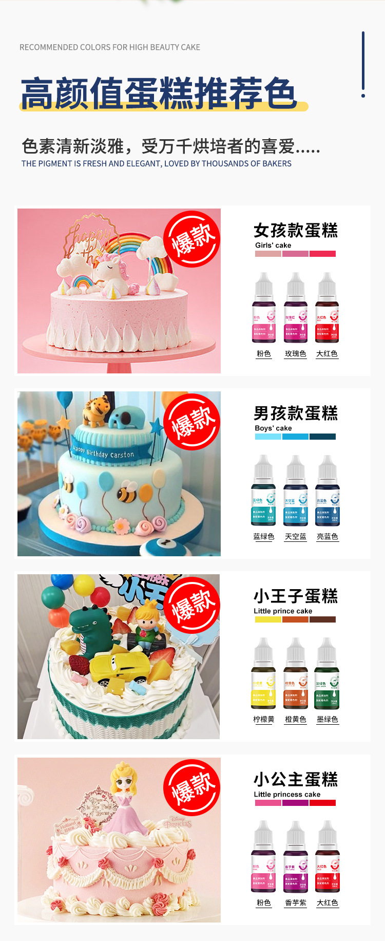 食用水油両用色素14色マカロンマシュマロ焙煎ケーキ表装花diy児童実験