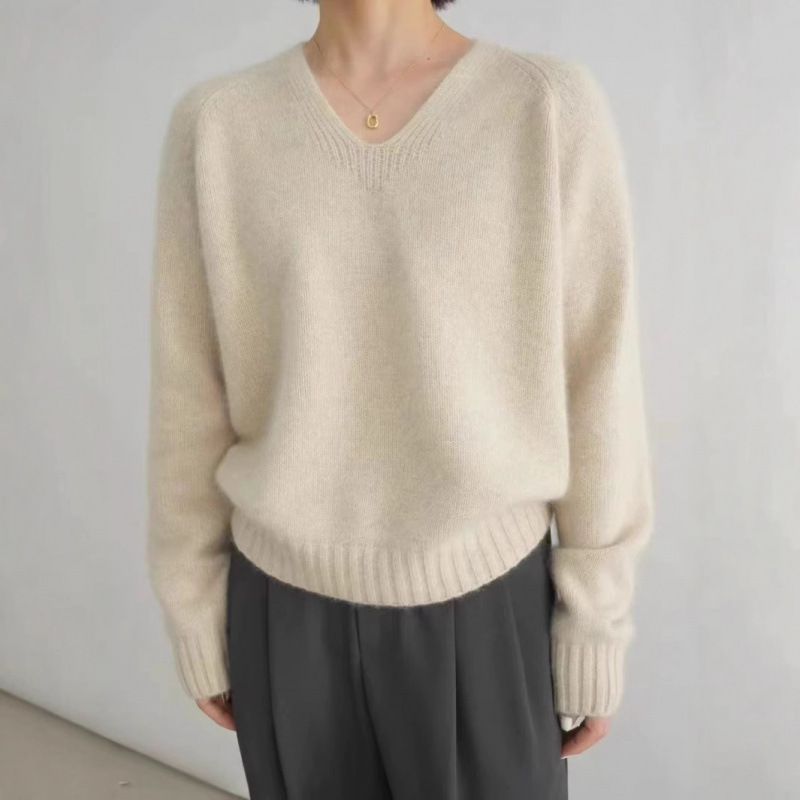 ヨーロッパ製超極細透明超薄型ボトムセーター女性用ルーズカシミアボトムセータースリムソリッドカラーセーター