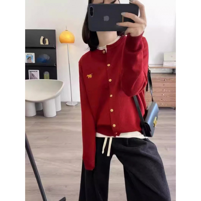 欧品の新型の小さい香風のニットのカーディガンの女性の丸首の刺繍の飛天の馬のゆったりしているカジュアルな百合の韓国版のコート