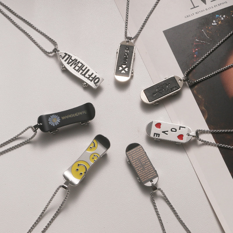 欧美滑板车不锈钢项链嘻哈风男女款珍珠吊坠复古挂件合金饰品批发