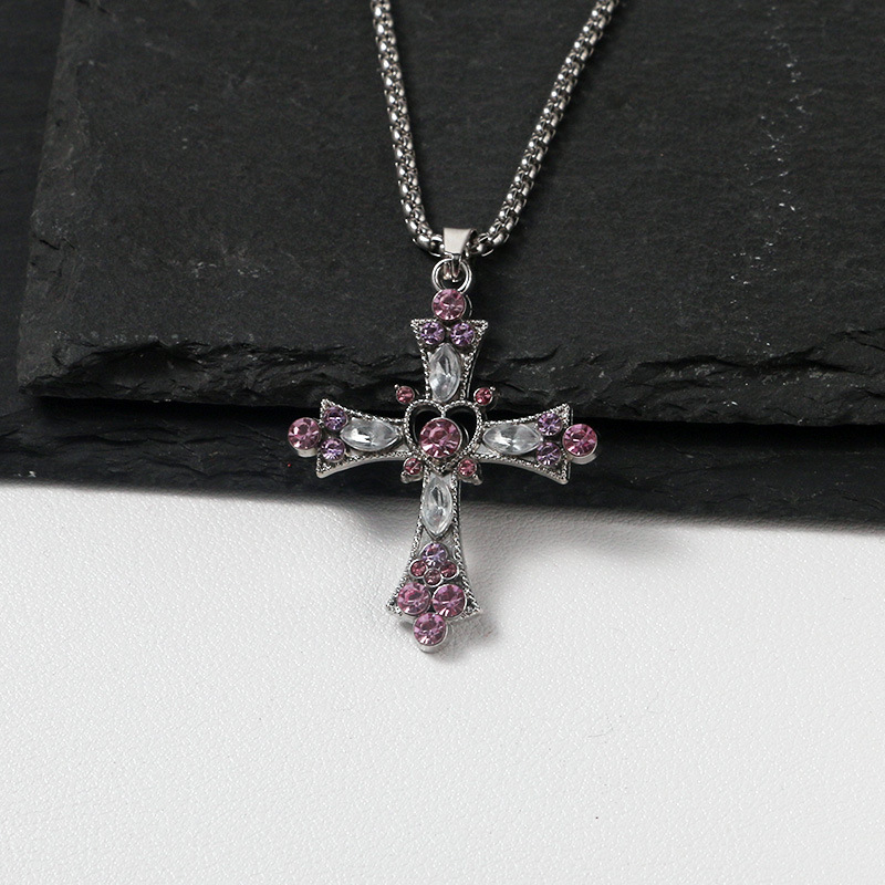 甘くてクールなホットガールクロスネックレス女性のためのヘビーデューティーダイヤモンドゴシックヨーロッパとアメリカンスタイルy2kネックレスソースメーカー卸売