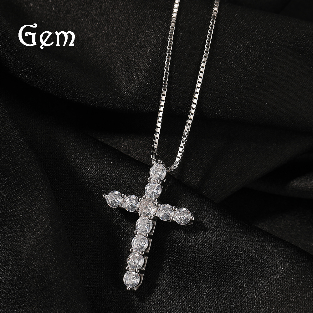 欧米のヒップホップ925純銀ジルコンのドリルの十字の形のペンダントの潮流のネックレスの男女の同項の軽い豪華な装飾
