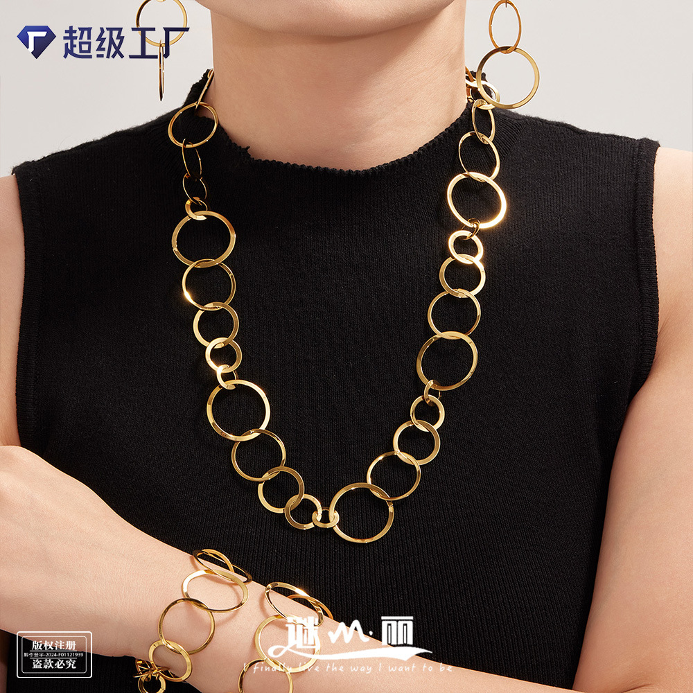 谜丽简约大气不锈钢大小圆圈耳环手链项链环环相扣设计感女式套装
