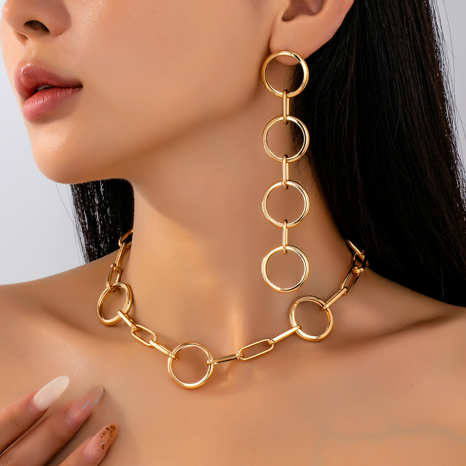 跨境小众设计简约高级几何圆圈耳环项链套装适合女士日常派对佩戴