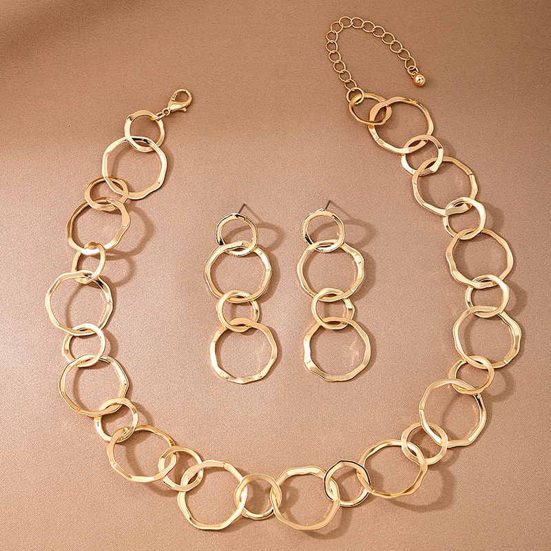 1セットの欧米のファッションの気質は金属の幾何学の円の女性のネックレスのイヤリングのアクセサリーのスーツを合わせて日常的に身につけます。