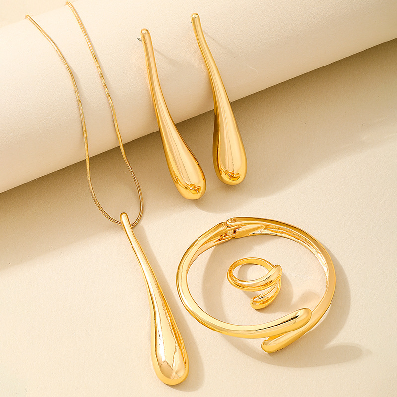 1セットの欧米の優雅な金属の長いタイプのフリンジの水滴は女性のネックレスのイヤリングの指輪のブレスレットのアクセサリーのセットを抱いています。