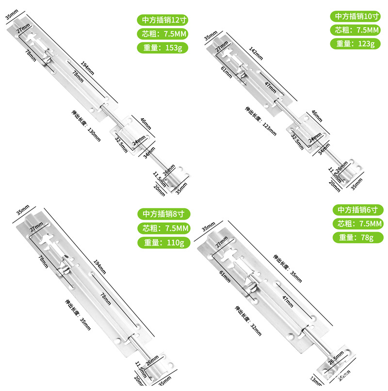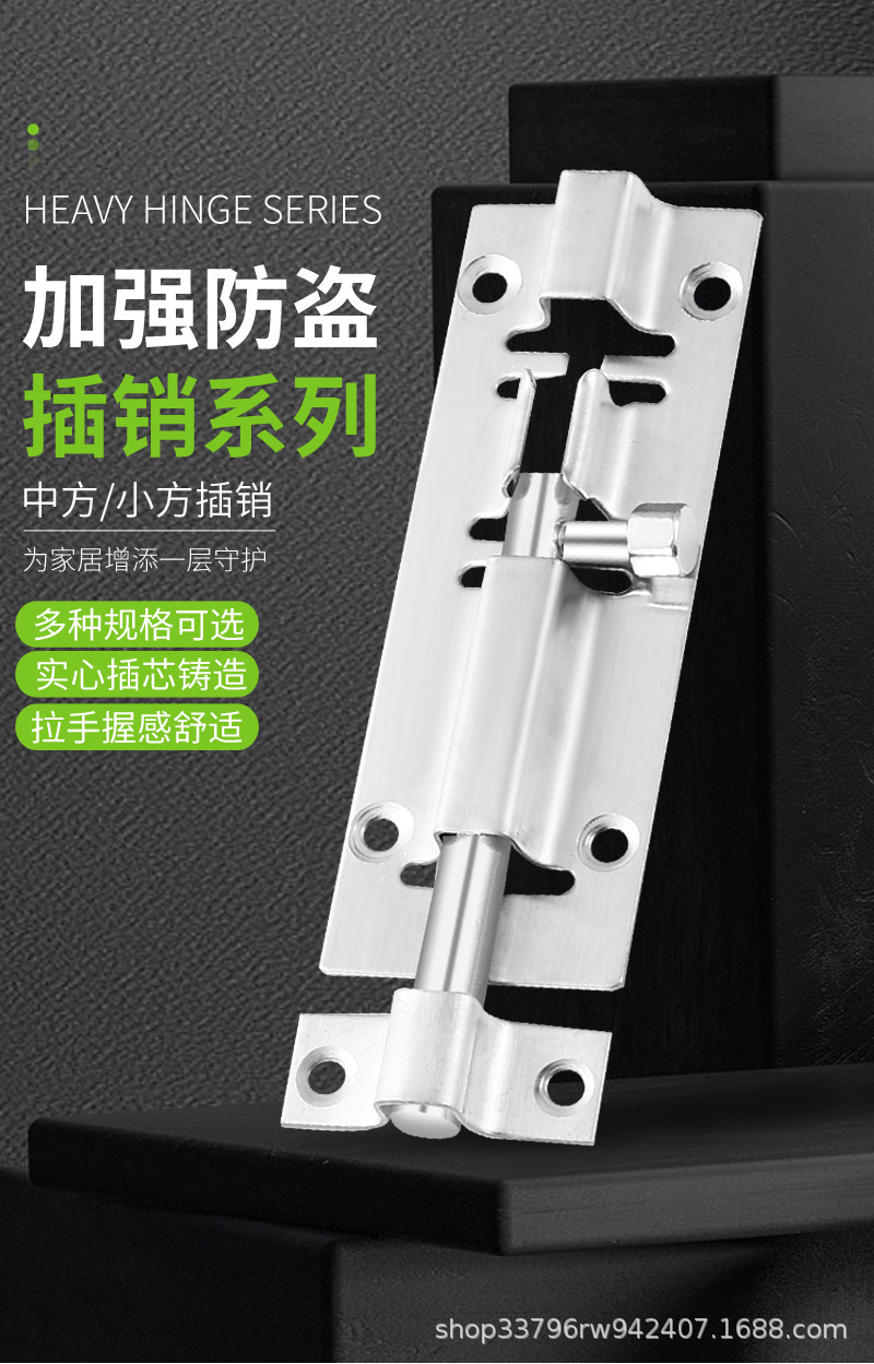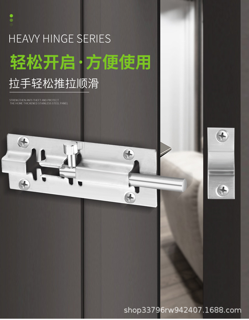 1寸6寸不锈钢木门窗防盗插销锁加厚明装老式门小方不锈钢插销门栓