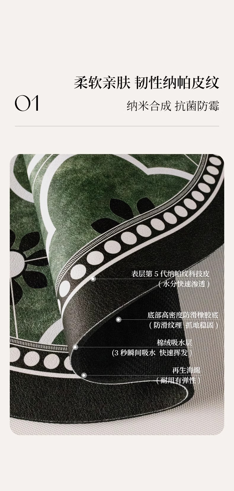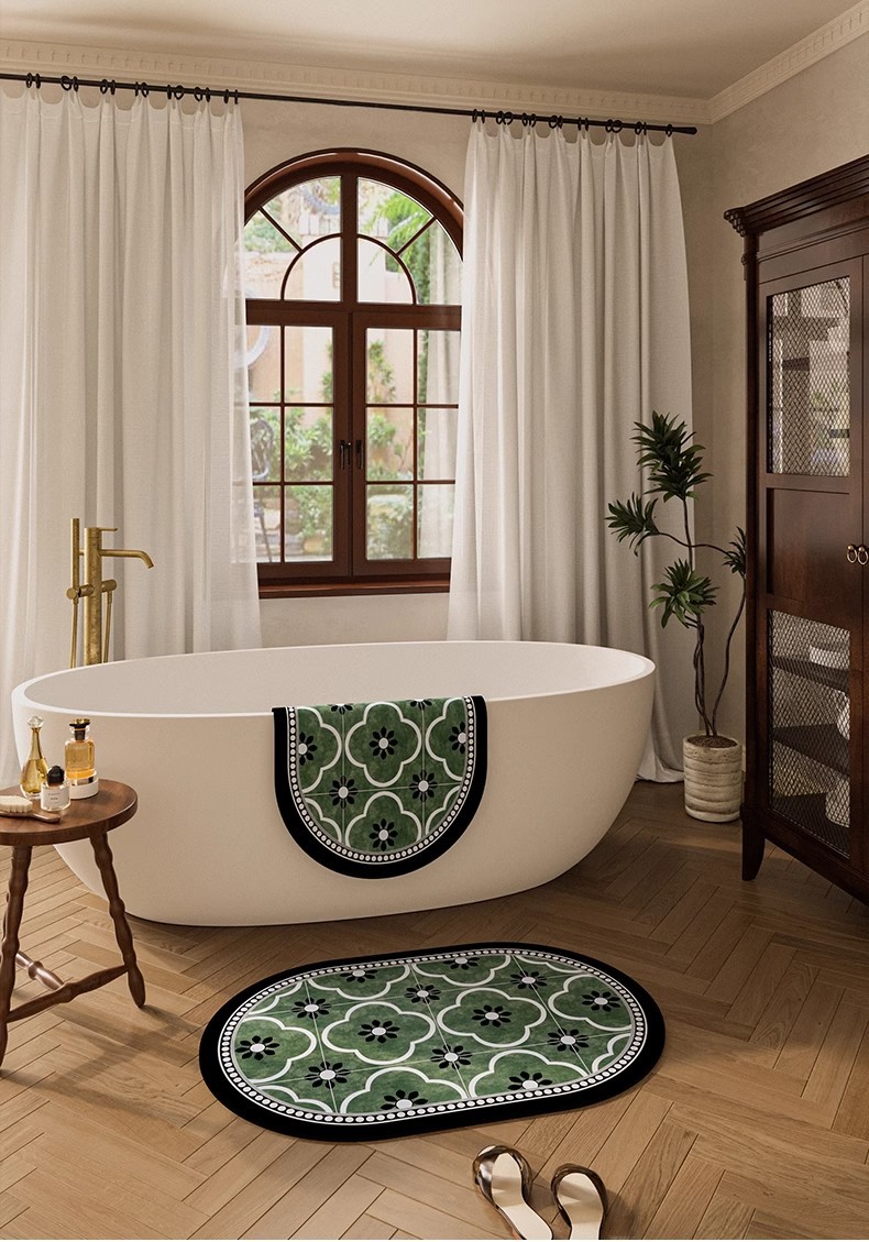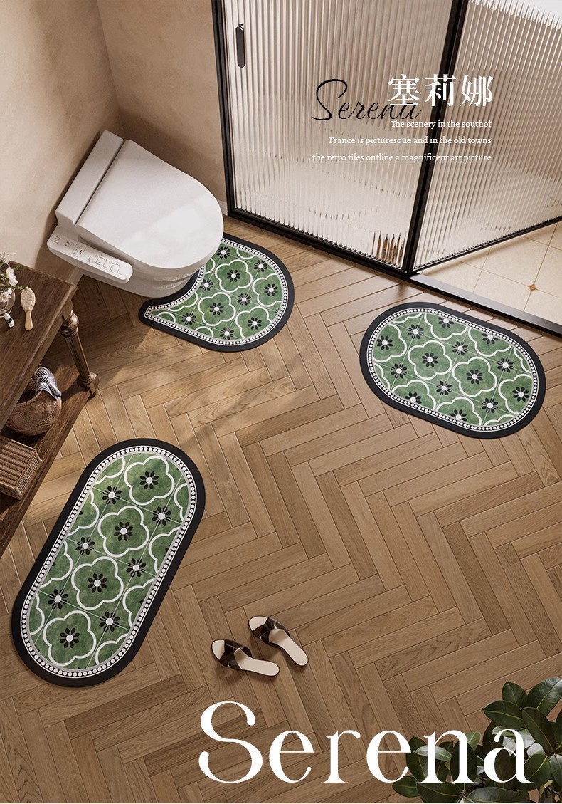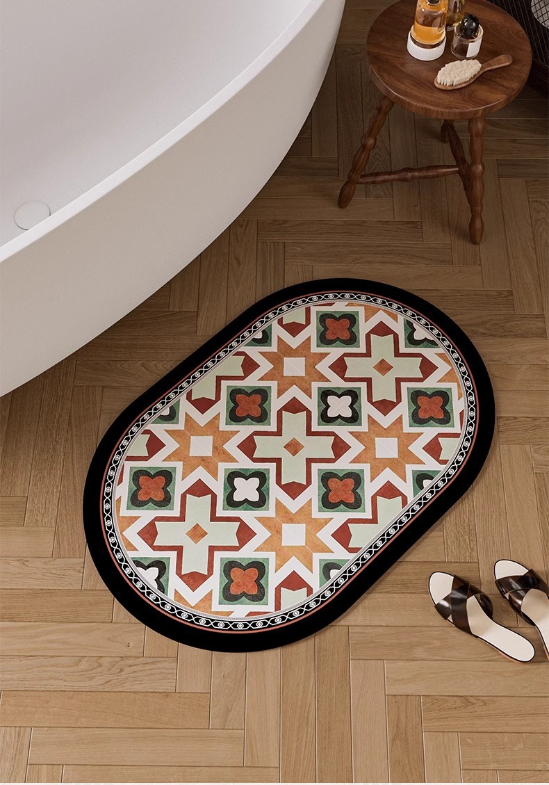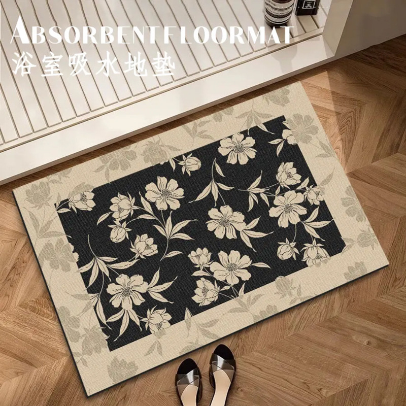 越境軽奢レトロ風バスルームドアマット、吸水速乾フロアマット、家庭用滑り止めソフト珪藻土マット