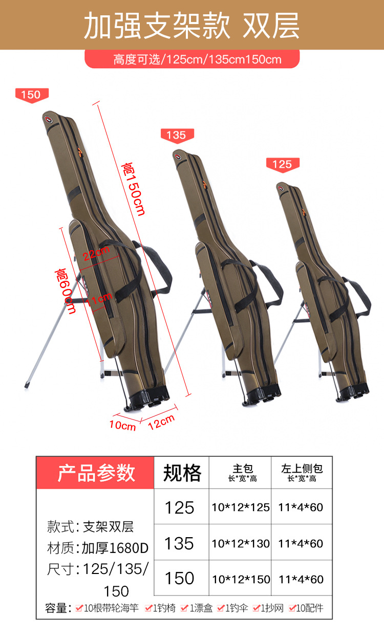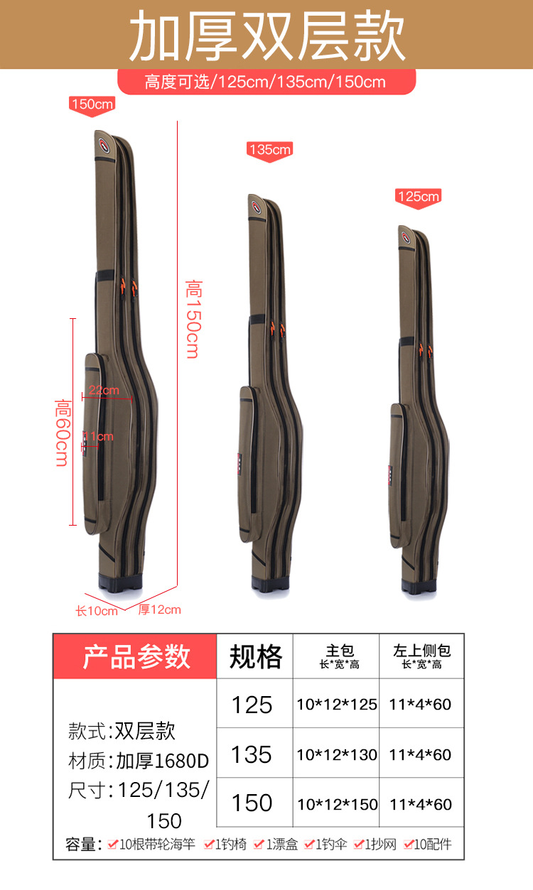 釣り竿バッグ、海竿バッグ、厚手大容量バッグ125、二層式釣り竿バッグ、傘バッグ、手竿バッグ、台湾釣り道具バッグ