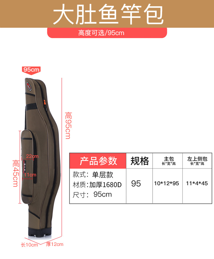 夢の漁90センチ複合大腹包厚耐磨耗竿包硬殻単層漁具包