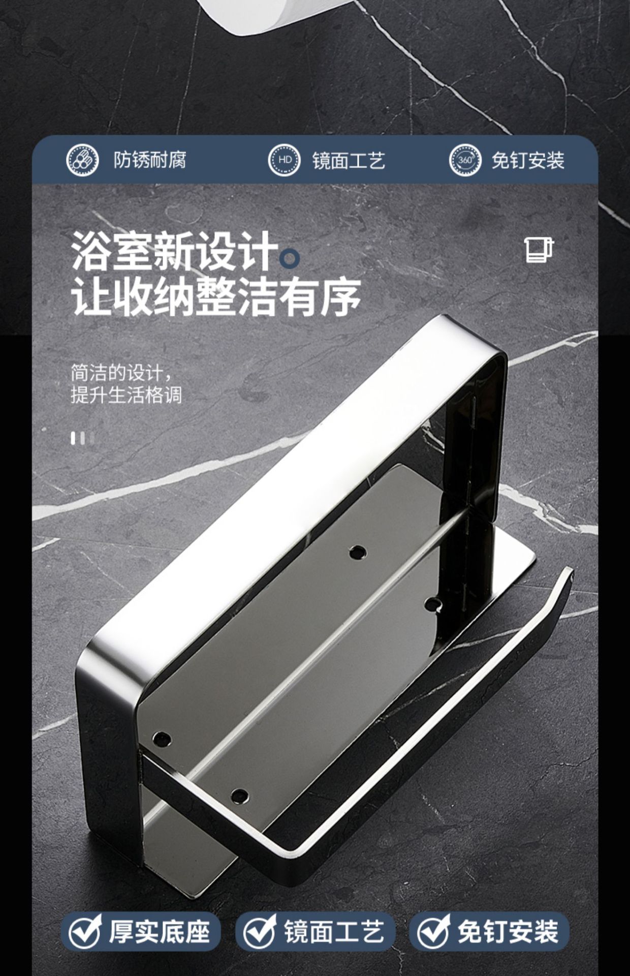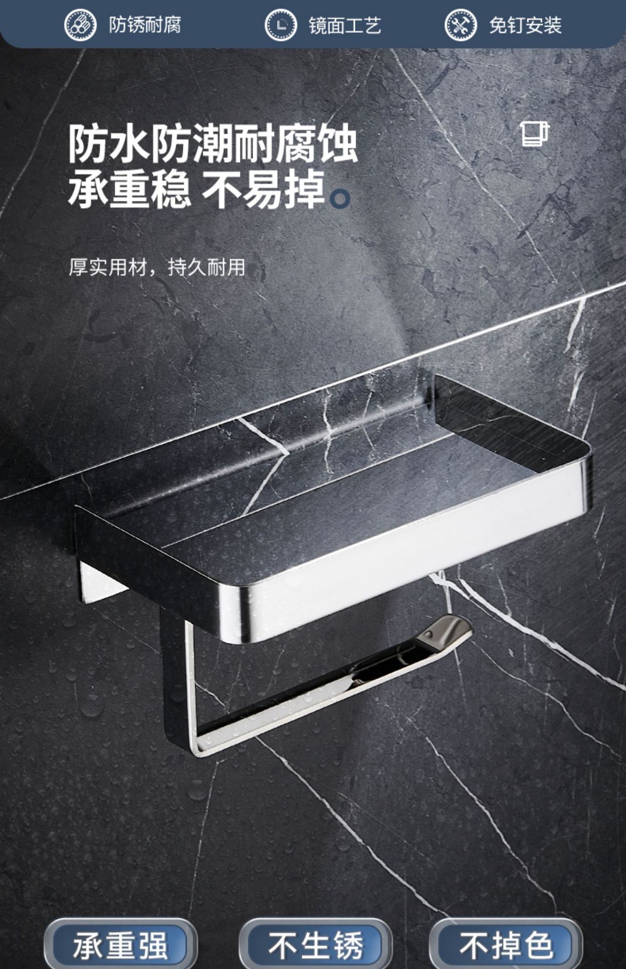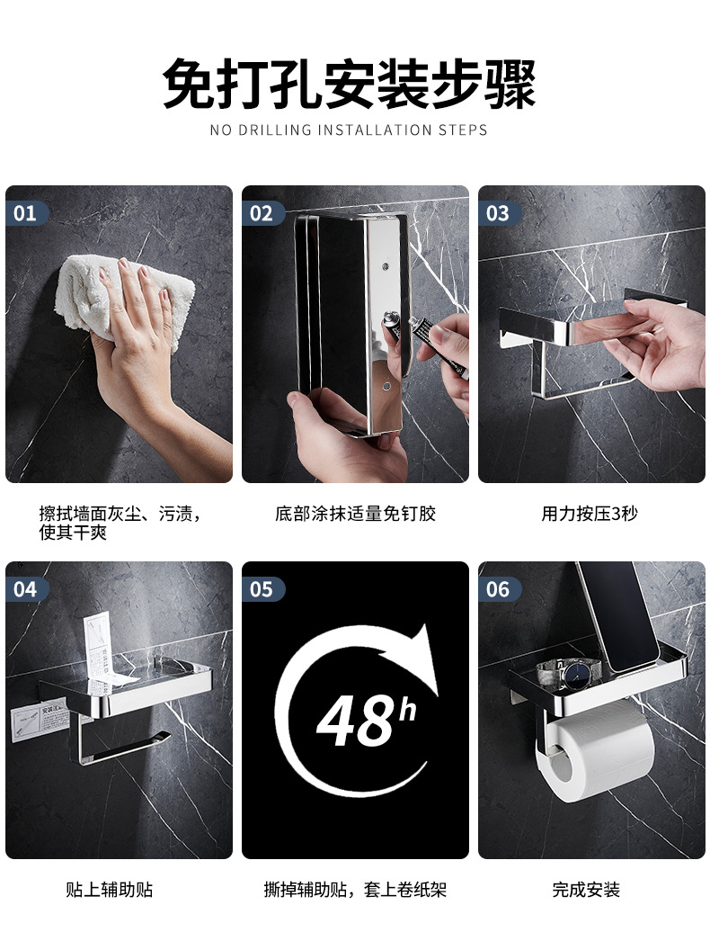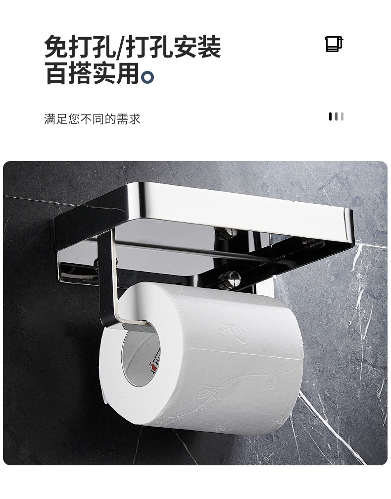 穴なしロール紙ホルダー304ステンレス壁掛け式携帯電話ホルダートイレロール紙箱トイレティッシュホルダー