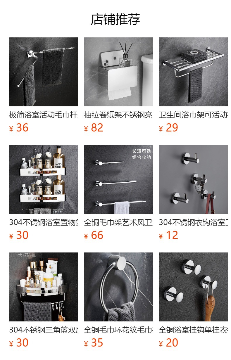 加厚304不锈钢毛巾架浴巾架免打孔壁挂卫生间手巾架浴室置物收纳