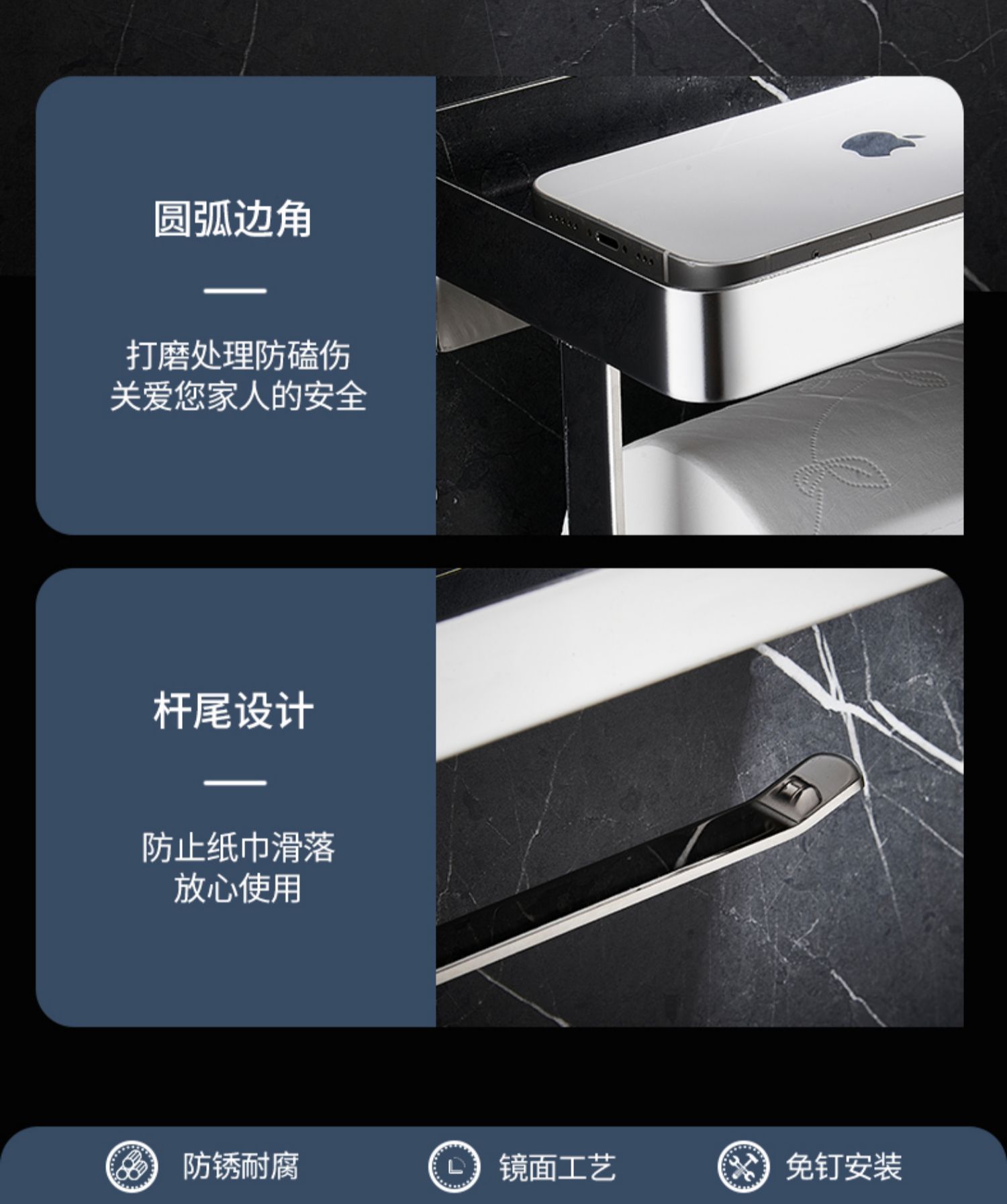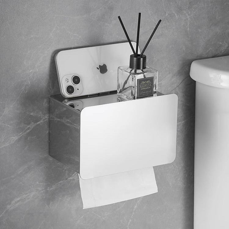 引き出し巻き紙棚ステンレス光沢携帯電話トイレットペーパーホルダー家庭用壁掛け式ティッシュラックトイレティッシュケース