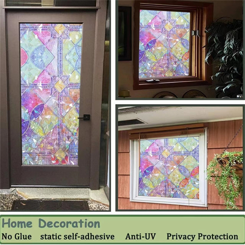 静電無糊すりガラスフィルム3Dレーザーモザイク人気覗き見防止不透明ガラスシール