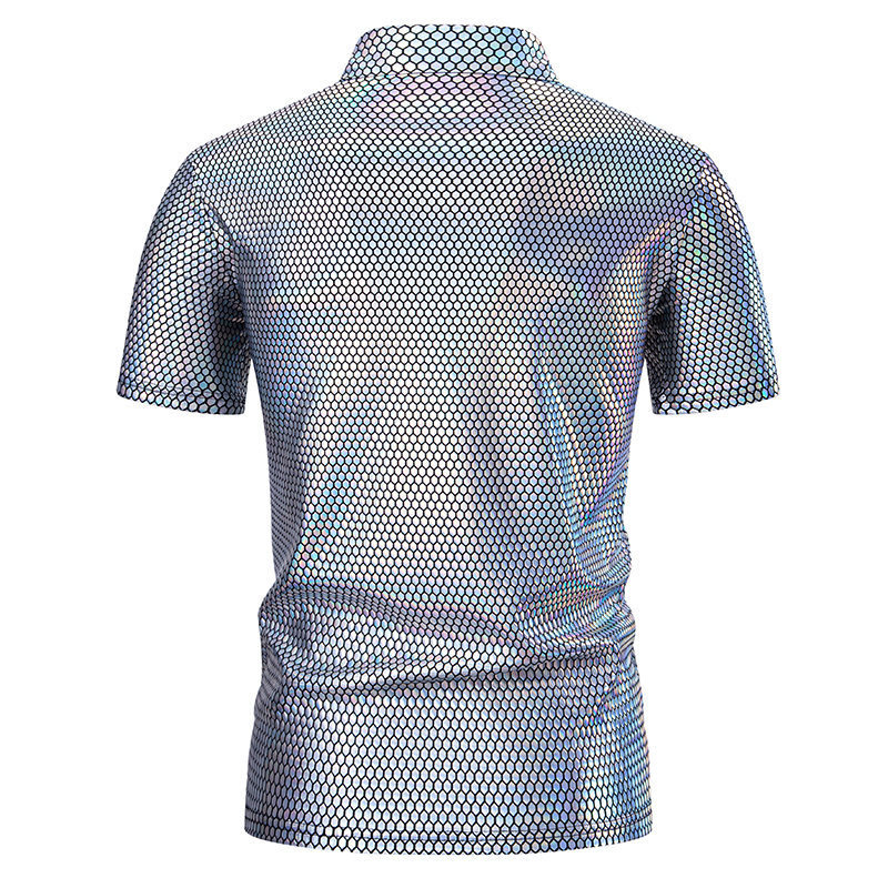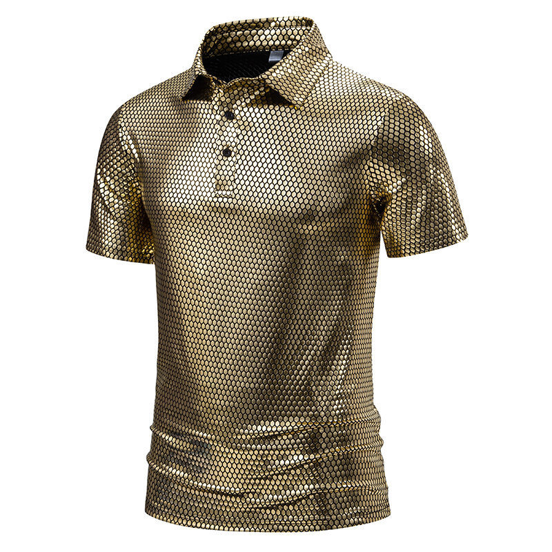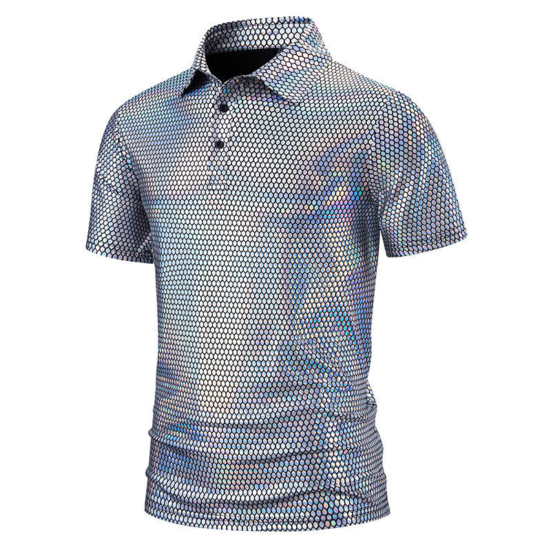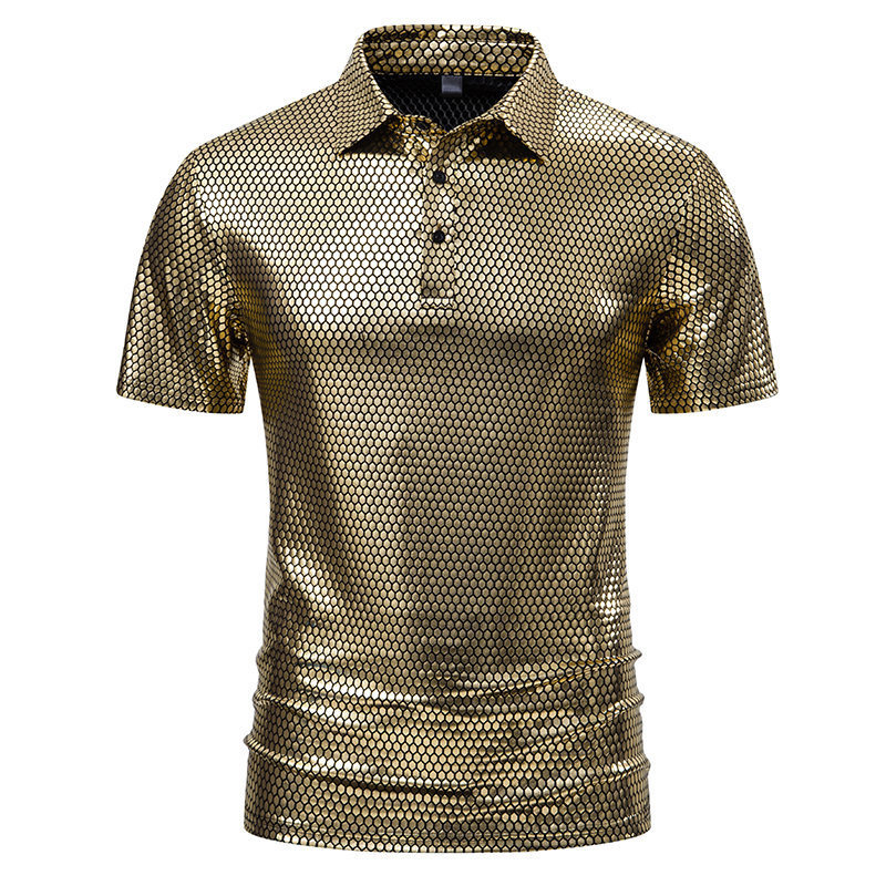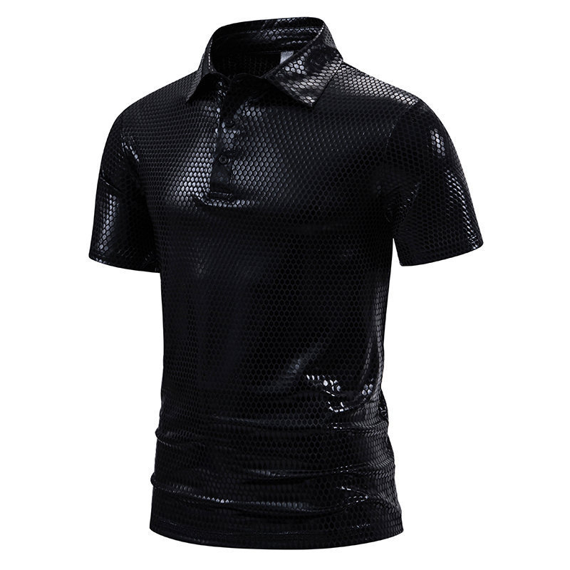 夏の新型アマゾンクロスボーダー半袖ポロシャツ男性亮面半袖折り襟tシャツポロシャツ男性