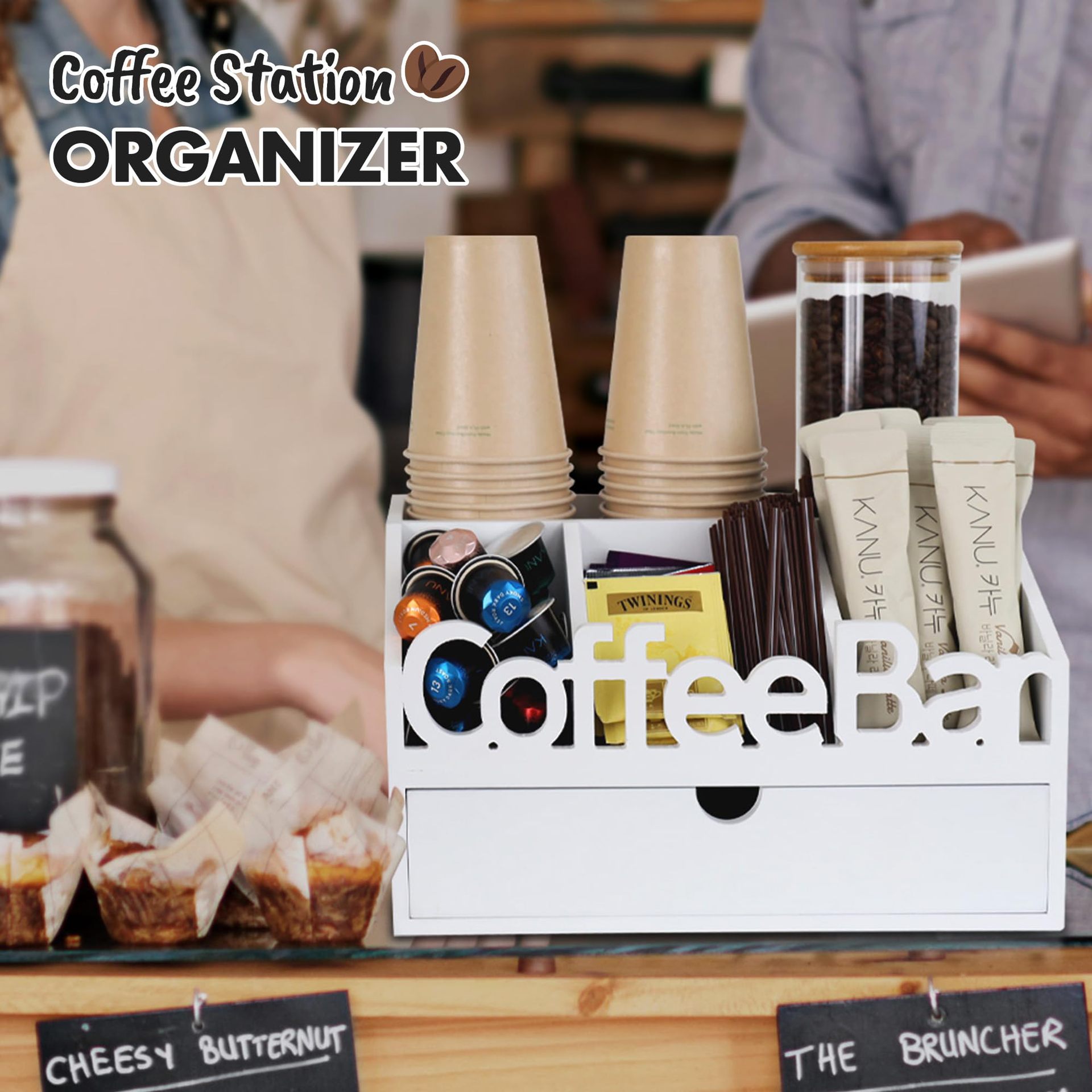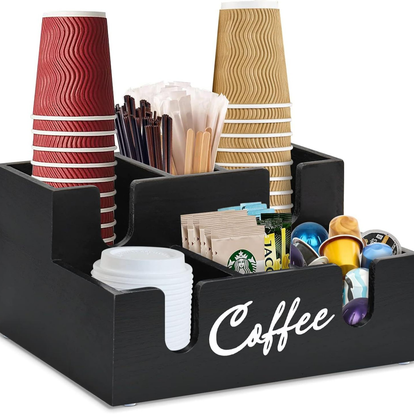 木製収納ボックスコーヒーバッグティーバッグ整理仕切式家庭用紙皿ディスペンサーカウンターコーヒー紙コップ