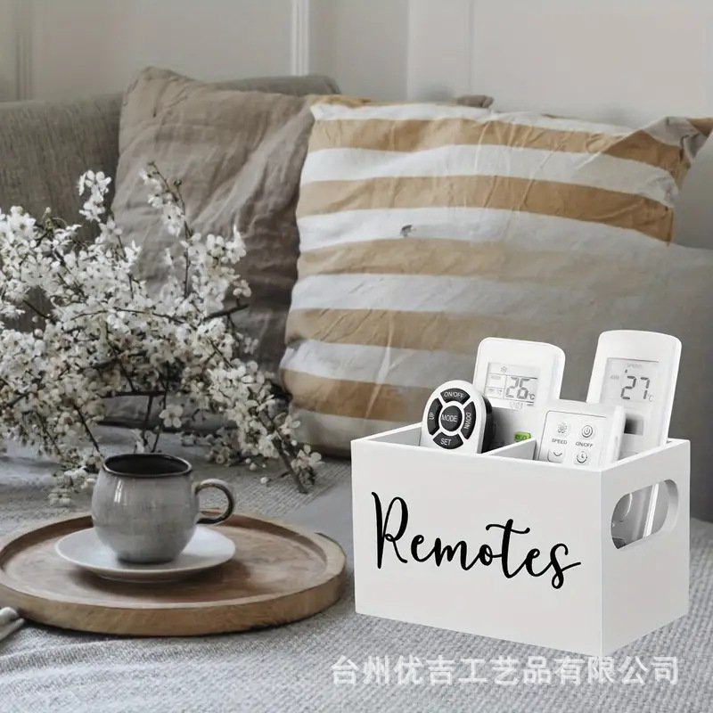 1pc 木製リモコン収納ボックスデスクトップオーガナイザーリビングルーム木製文具オフィス収納木箱