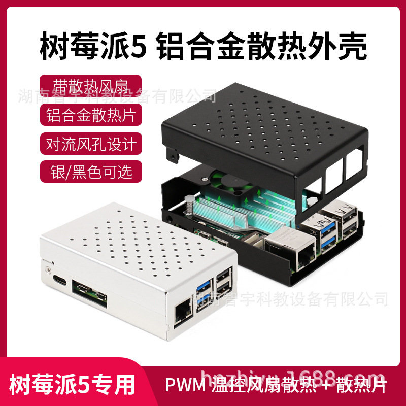 いちご派5世代Pi5アルミニウム合金放熱ケースPWM調速ファン付きアルミニウム合金ケース