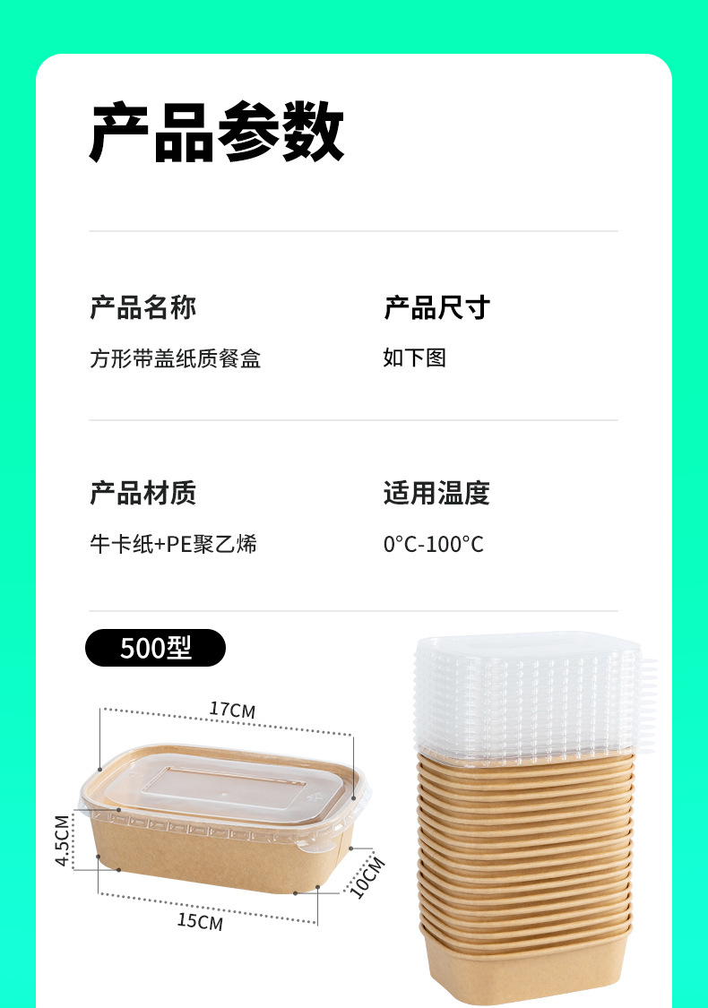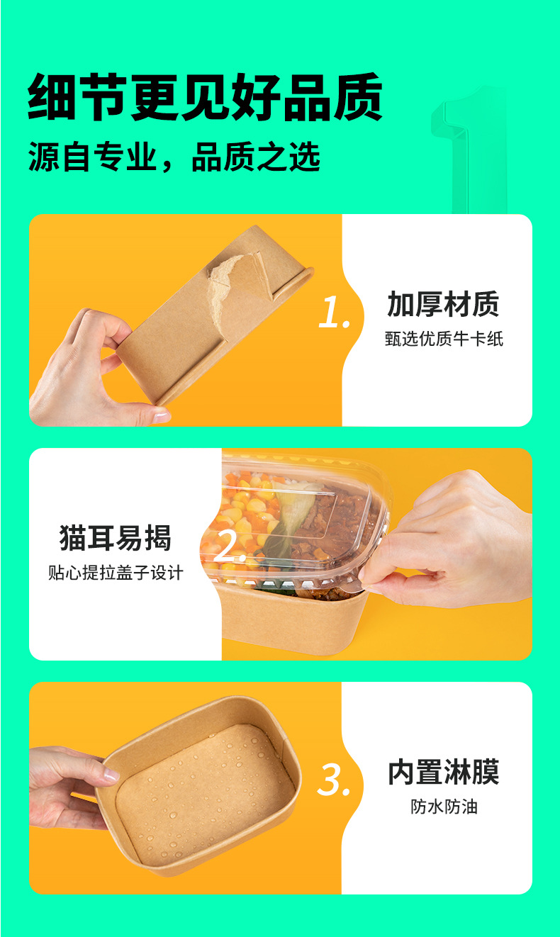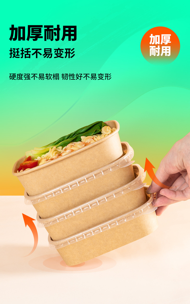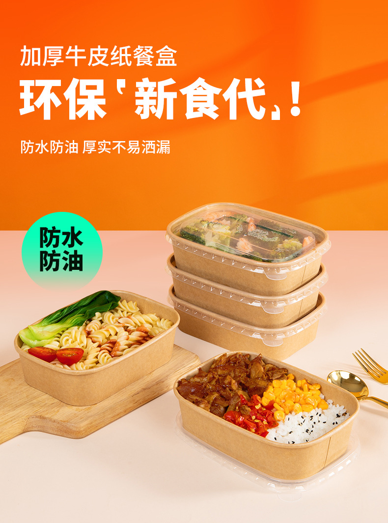 卸売り使い捨て家庭用弁当箱クラフト紙弁当箱包装箱厚さ防止環境保護業務用出前弁当箱