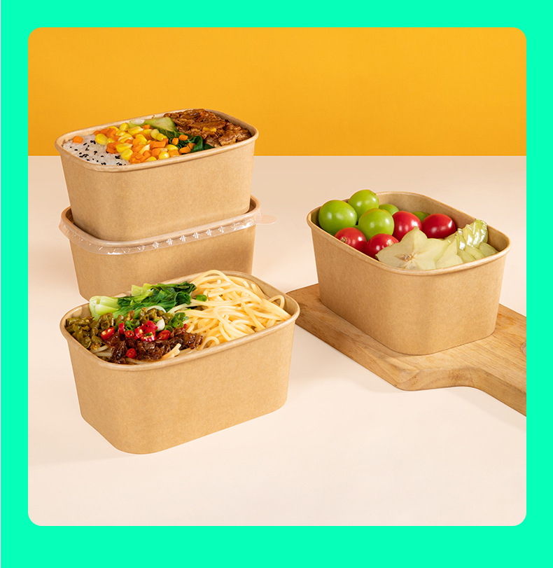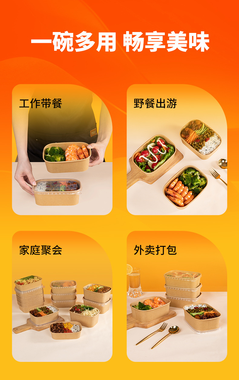卸売ボウル、使い捨てクラフト紙包装箱、ランチボックス、紙ボウル、蓋付き厚手アウトドアキャンプ食器、家庭用環境保護