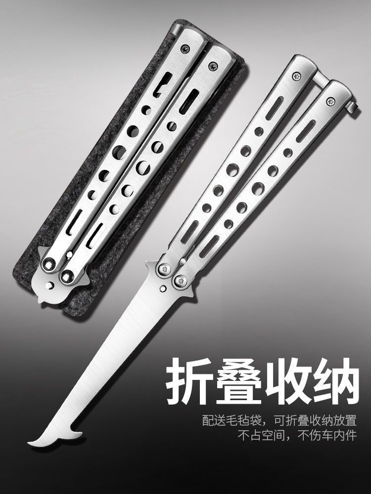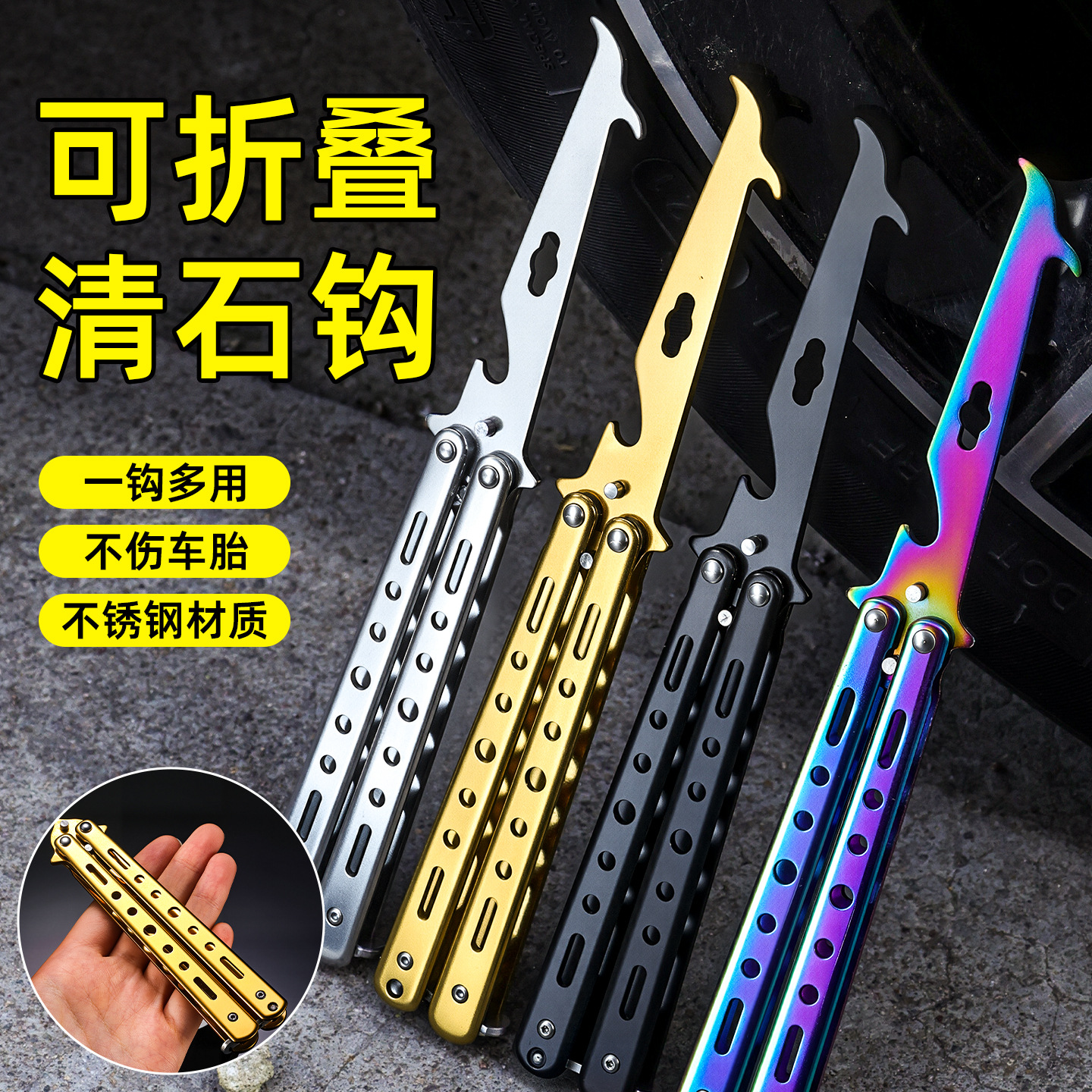 厂家批发未开刃练习蝴蝶钩子不锈钢折叠式汽车轮胎清石钩挖石工具