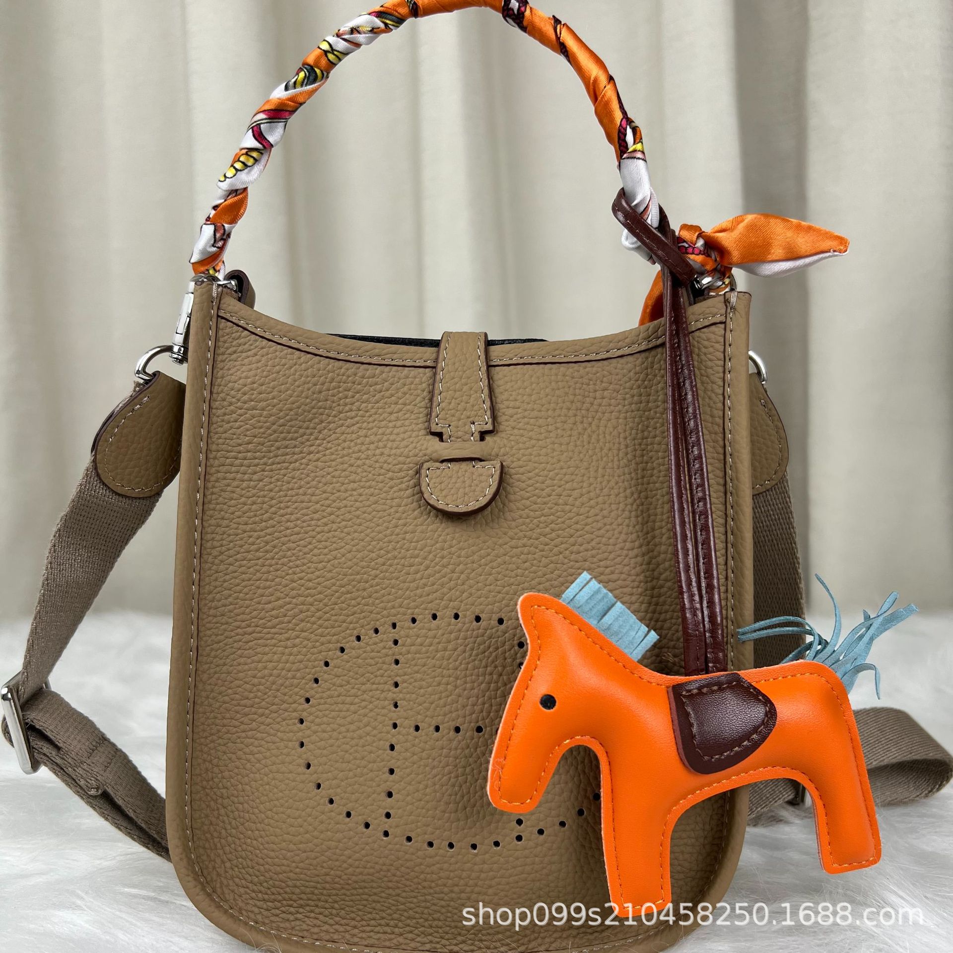 エバリン携帯バッグ新型h家mini斜めショルダーバッグの頭層牛革レイシ紋バケツ女性バッグミニバッグ
