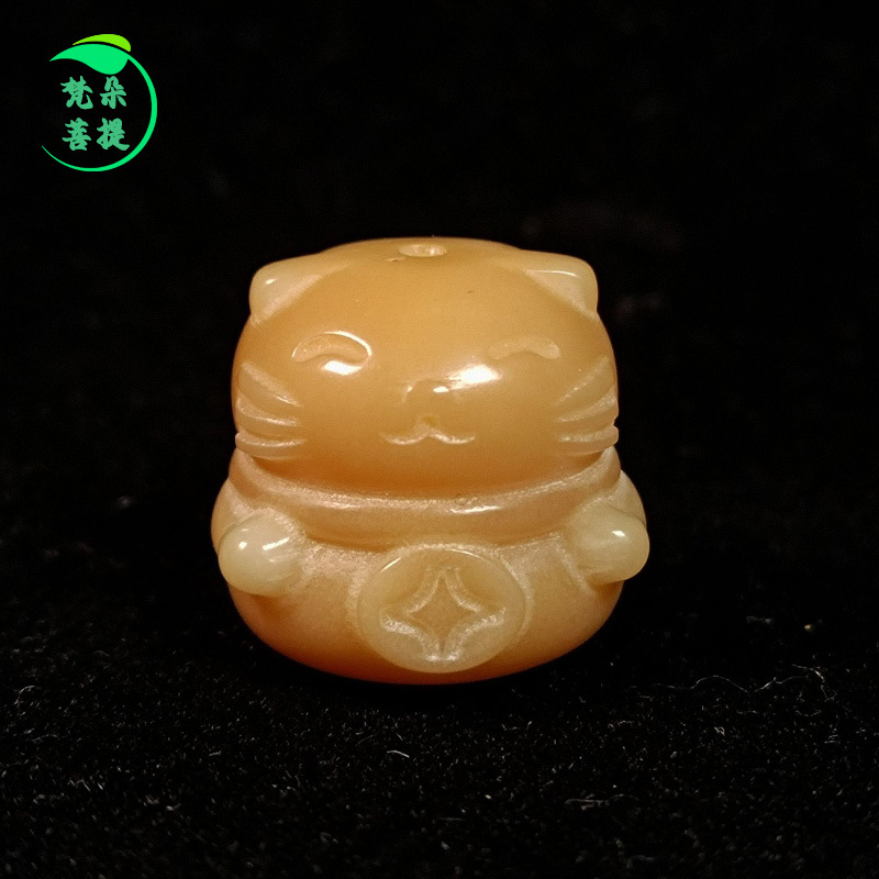 天然白翡翠菩提根招き猫精彫刻菩提樹ビーズブレスレットルースビーズ文具手ひねり DIY アクセサリー