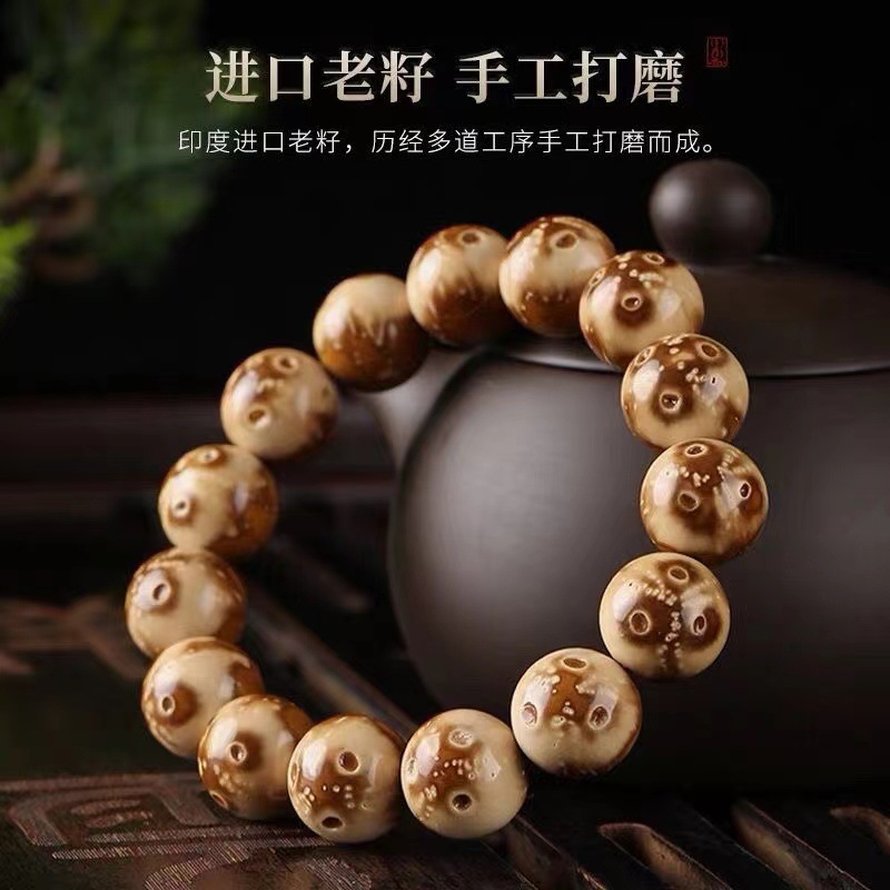 天然白玉菩提根手串菩提子原種ブレスレット12-27mm玉仏珠数珠手捻文游