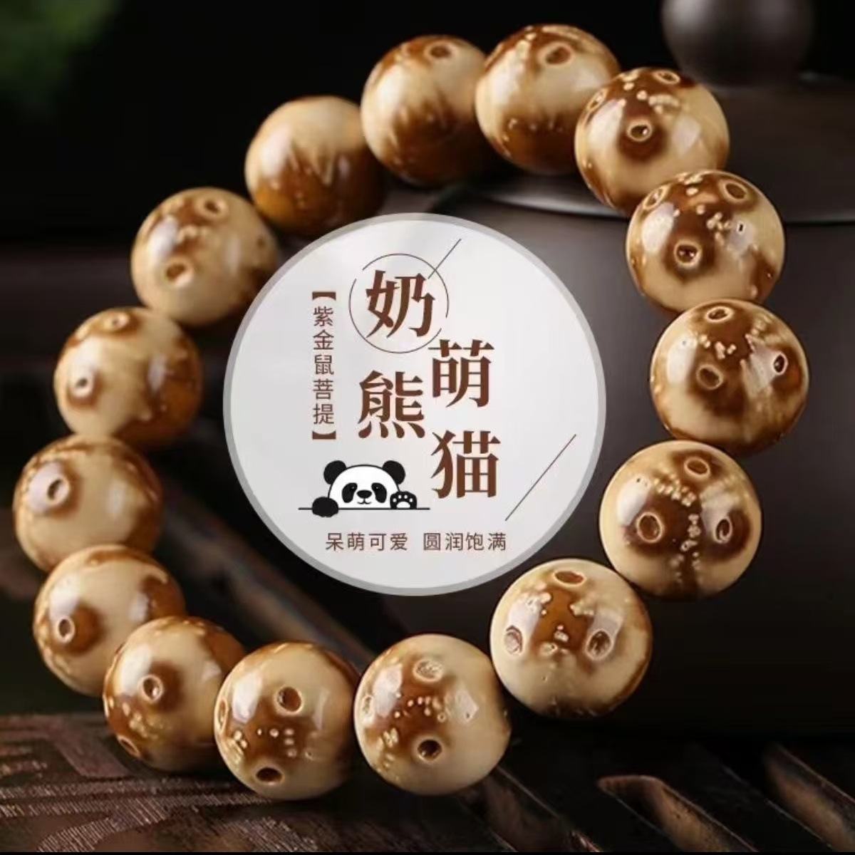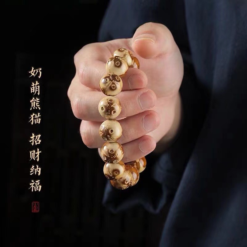 精品熊猫花皮紫金鼠菩提手串男士文玩菩提子原籽盘玩单圈佛珠手链