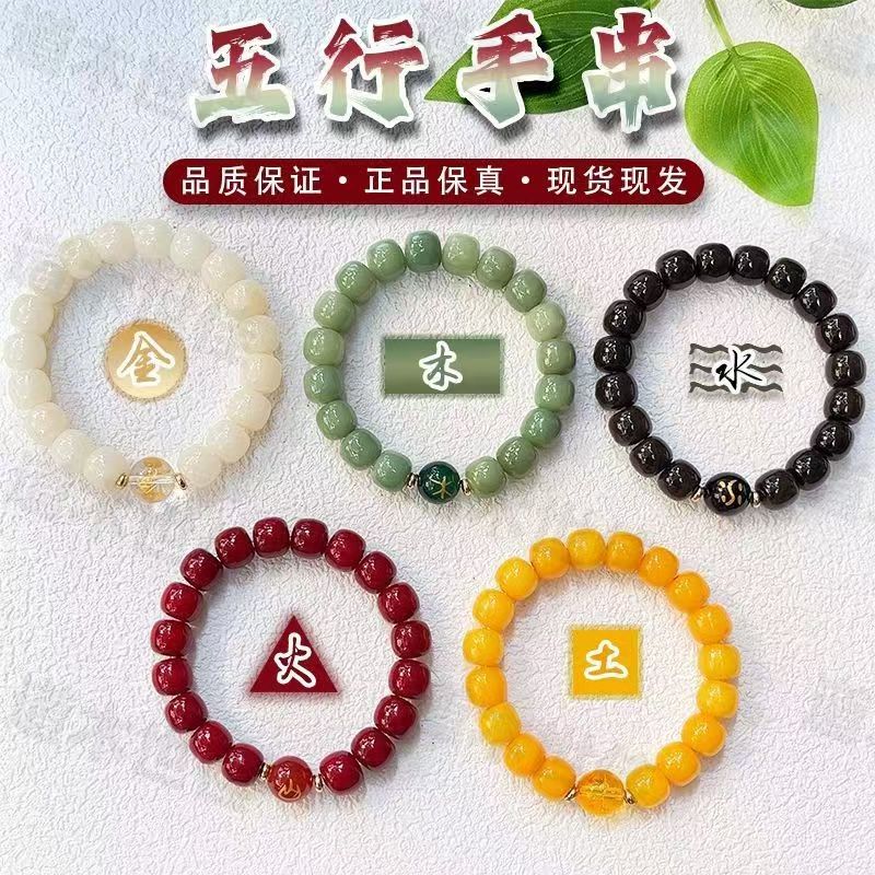 メーカー卸売【五行】金木水火土菩提根シングルサークルブレスレット国民的ファッション仏珠五行ブレスレット