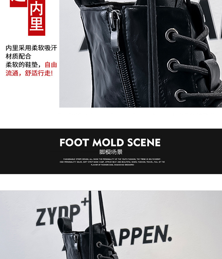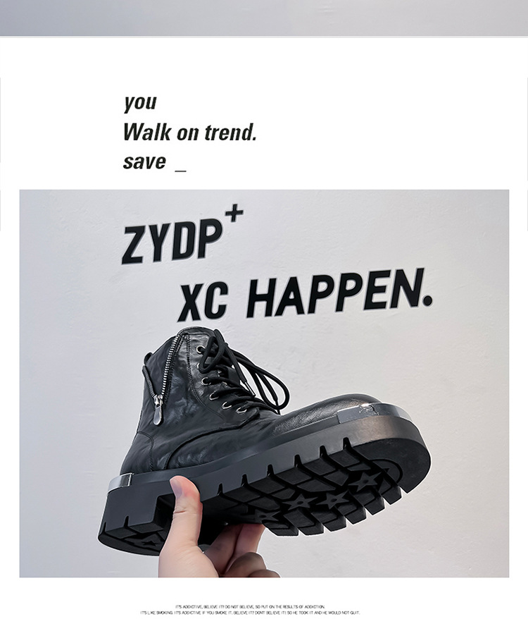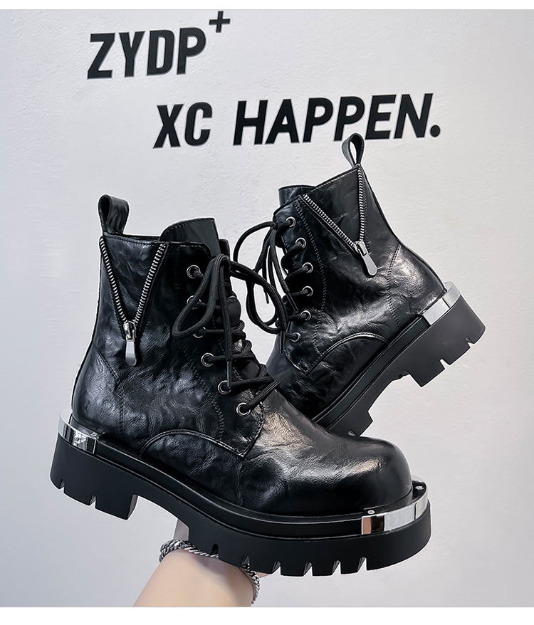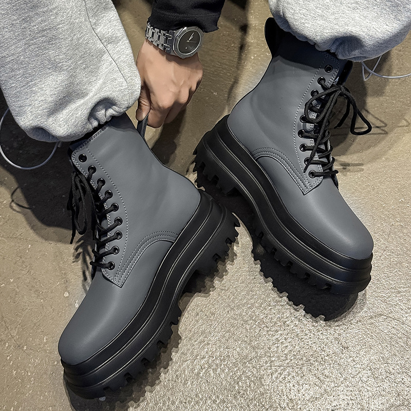 2025年新款英伦系带马丁靴炸街机车靴厚底增高时尚舒适潮流工装靴