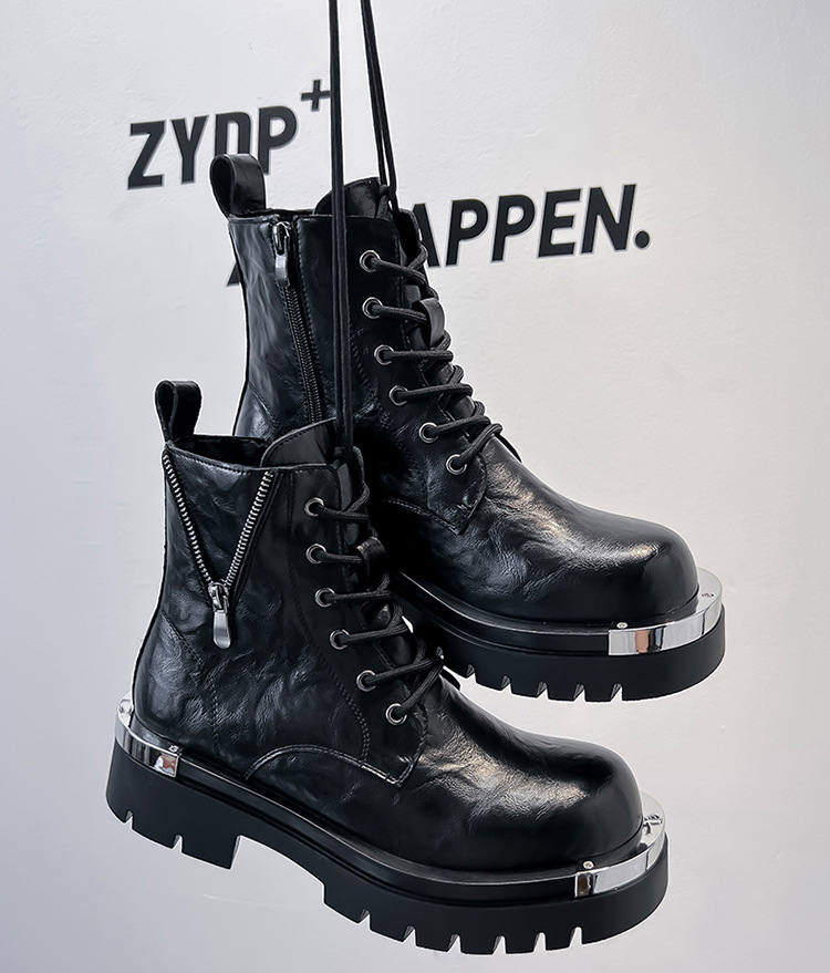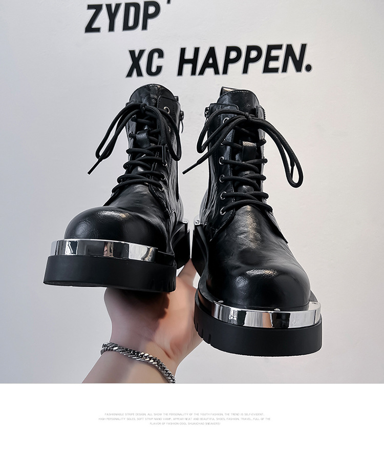 2025增高马丁靴男潮流高帮秋冬季大码复古英伦机车工装靴子