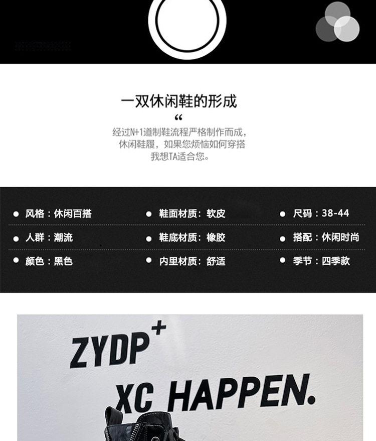 黒の厚い底が高くなったマーティンブーツ男秋の新型英倫風ショートブーツ欧米の街の機関車ブーツの復古潮