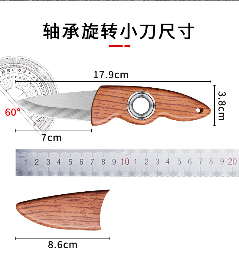 ベアリング回転ナイフ家庭用携帯フルーツナイフ多機能屋外キャンプバーベキューハンドル肉ナイフ