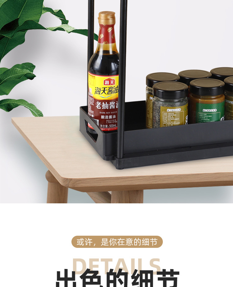 二層引き出し式穴あけ不要キッチン調味料収納ラック、卓上多機能収納棚、卸売、ラベル貼り付け対応